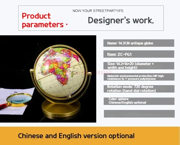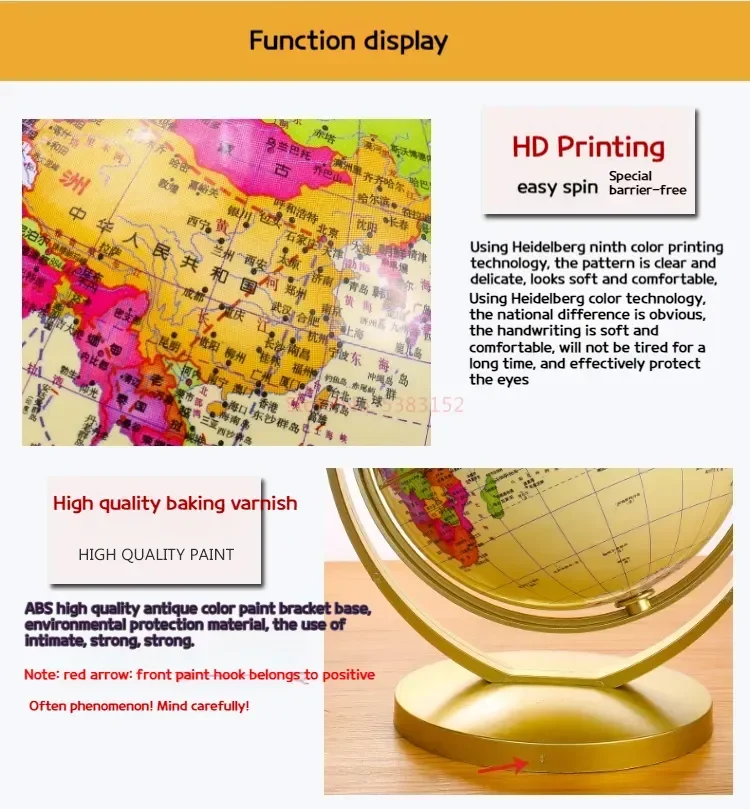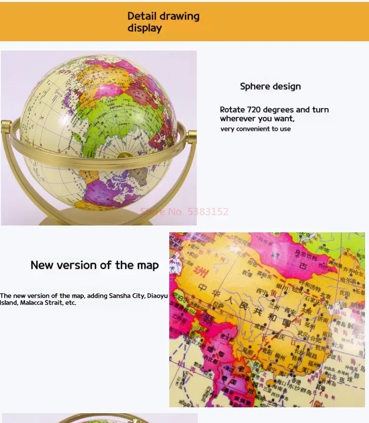 15 Universal High-definition Retro Student Globe 20 Cm High 720 Degree Rotating