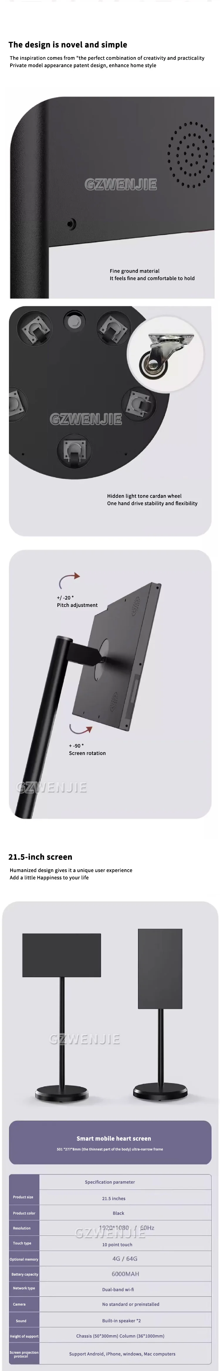 21 Inch Floor Stand Smart TV Android Touch Screen Vertical & Landscape Eye Care IPS Display Large Battery Smart Thin Edge Tablet