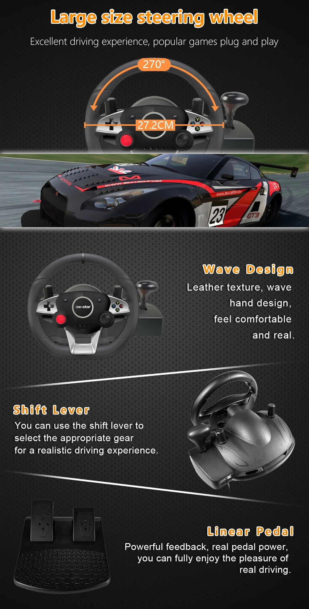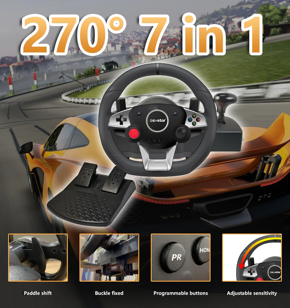 270 Degree Steering Programmable Buttons Compatible with Multi-platform Racing D