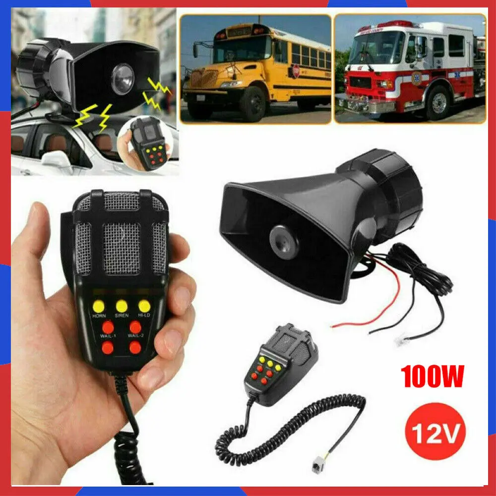 2V 100W Car Horn With MIC Loud Motorcycle Siren Vehicle Truck Warning Alarm Loud
