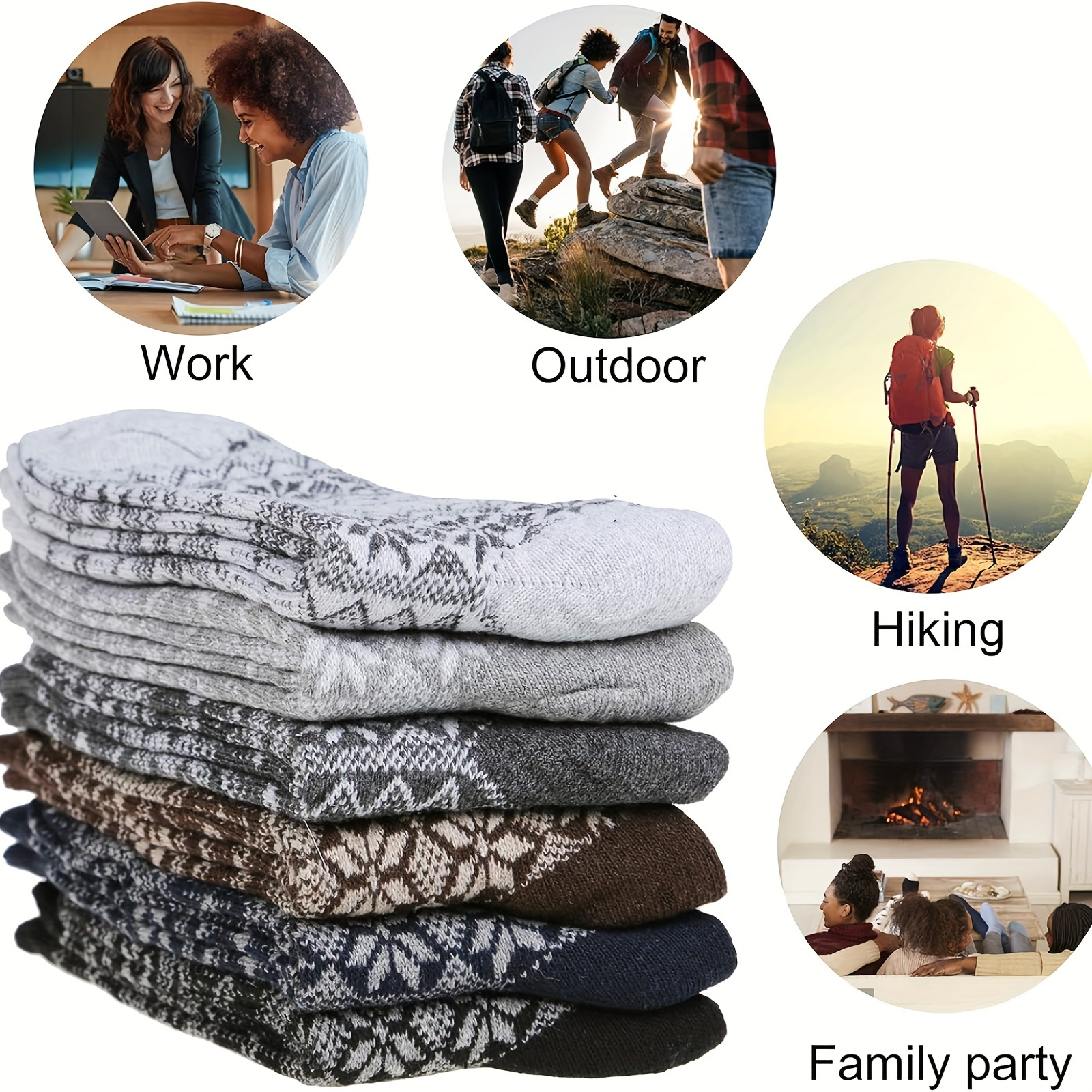 5 Pairs of Cozy Winter Crew Socks - Thickened, Warm, Colorful Geometric Pattern,