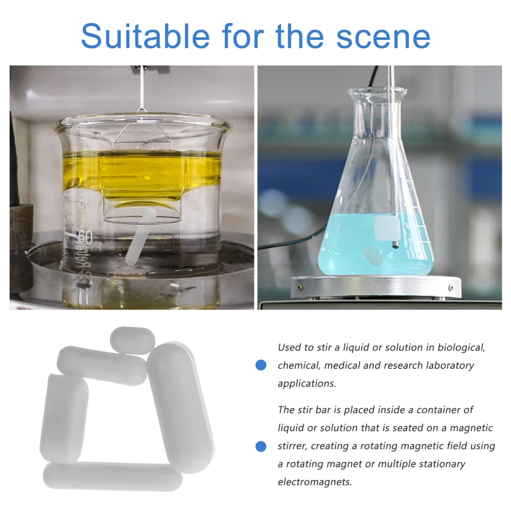 This item is a set of 5 pcs magnetic stirrer, manufactured with premium material, so that it can serve you for a long time. High quality material can ensure its durability and practicability. It is widely used in the chemical, medical , scientific research and experiments etc.