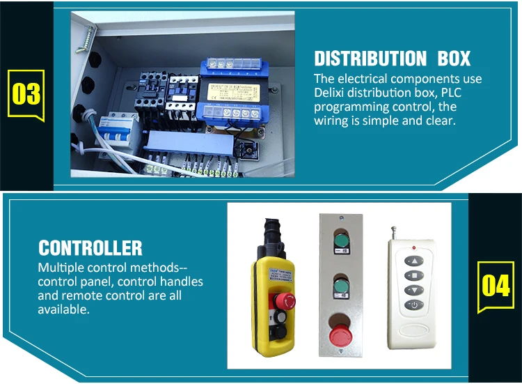 Its hydraulic system has fall protection device, overload protection device. Emergency falling device when