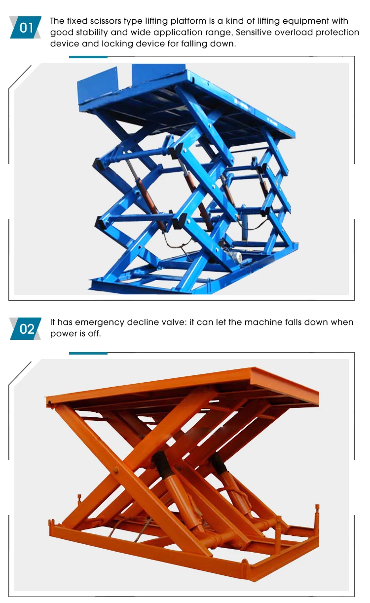Fixed scissor lift is used for transporting goods between the building floors, it is mainly used in workshop,