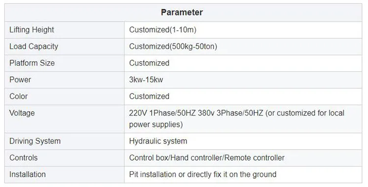 showing,pls let me know the Lifting Height,Load Capacity,Platform Size,I will quote