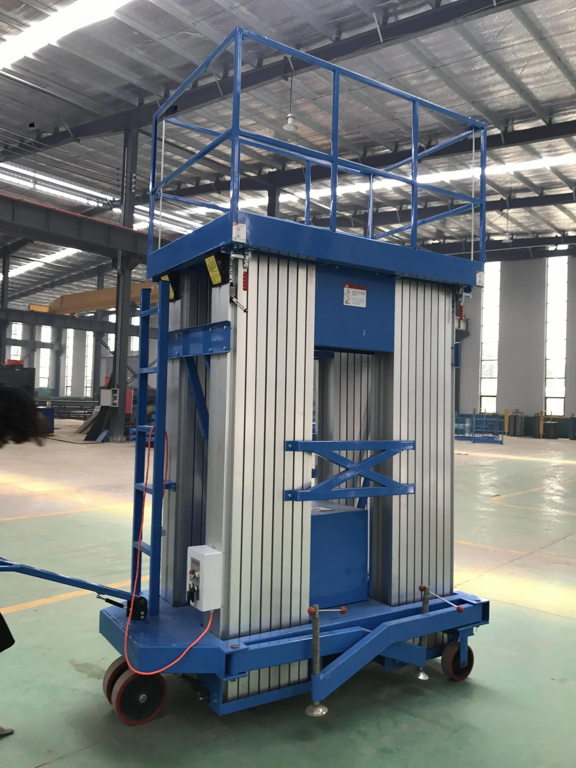 The overall refined of high-strength aluminum materials, due to the high profile strength, attractive appearance, small size, light weight, compact structure, easy to move, stable lifting platform, easy operation, safety, reliable and other advantages, to make the aerial work more convenient, efficiency, and also can control the speed. It is a ideal aerial equipment for modern enterprise's efficient production.