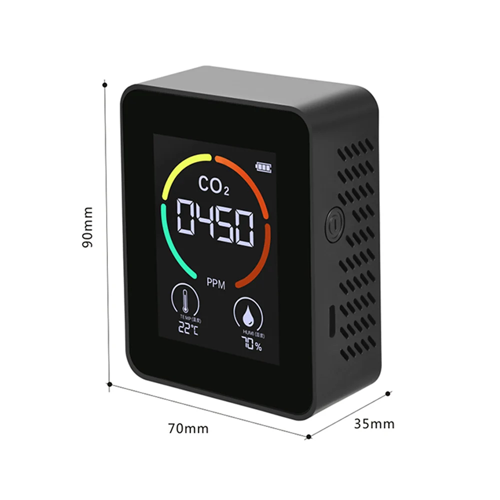 3. The 2.8-inch LCD screen with backlight can clearly display the current values of CO2, temperature and humidity. The colored circle will change according to the current CO2 value.