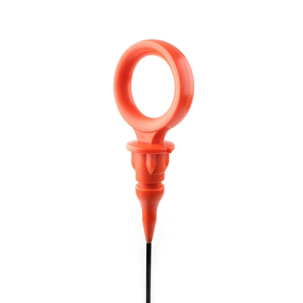 -Brightly-colored handle makes the dipstick easy to locate under the hood .
