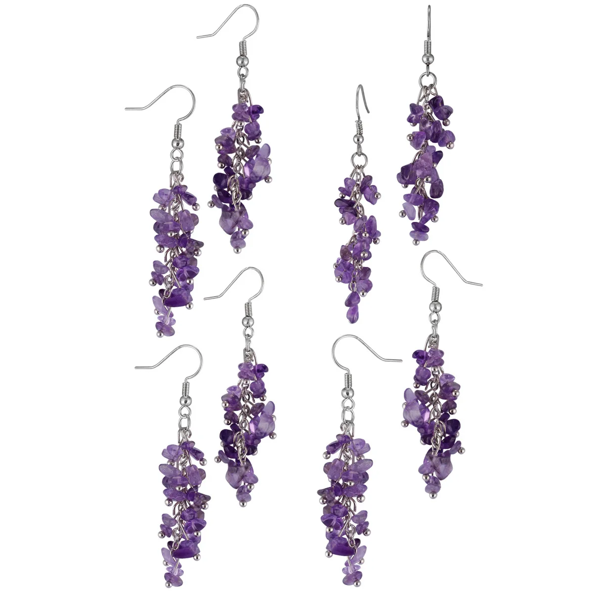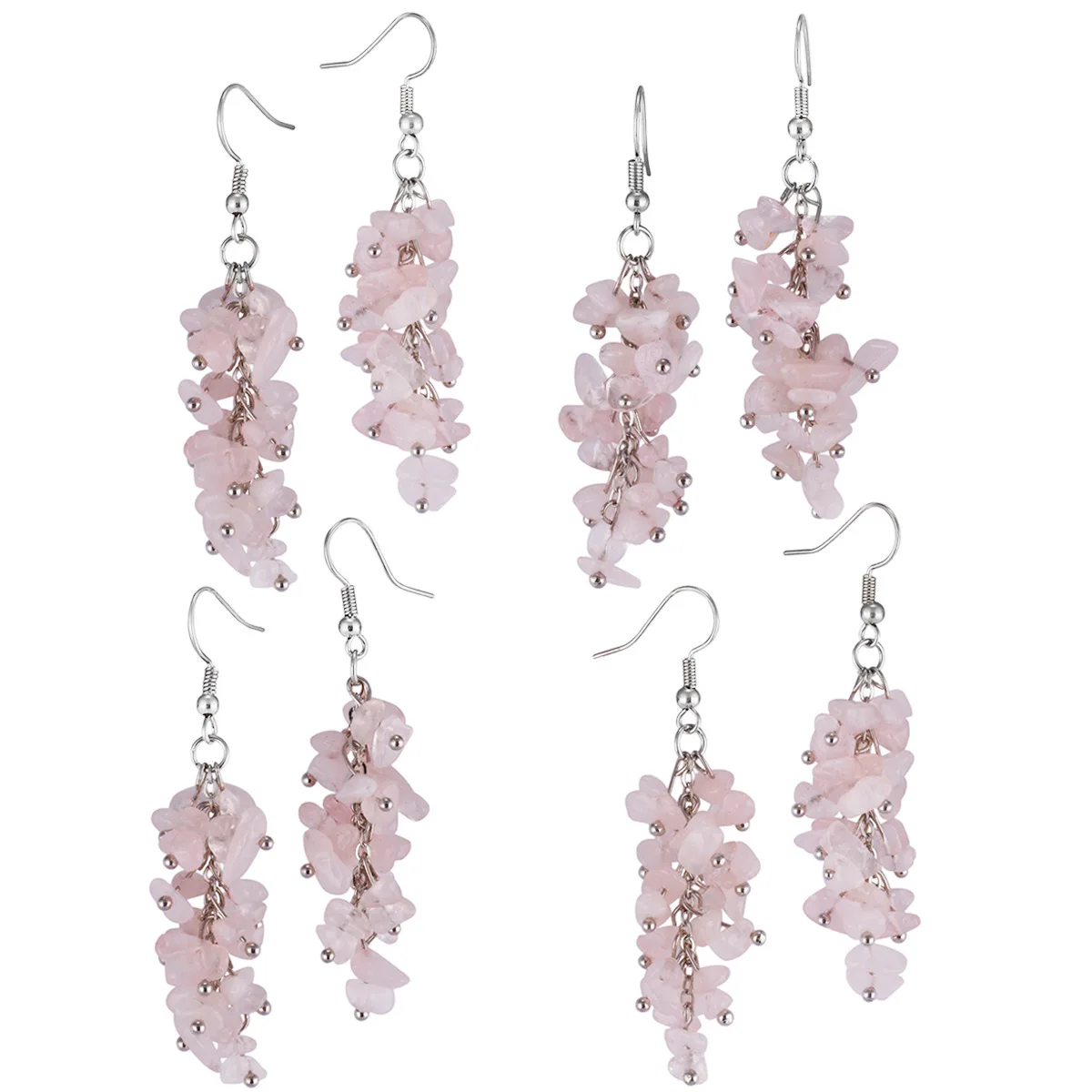 Bohemian Women Natural Crystal Irregular Crushed Stone Grape Shape Tassel Hook D