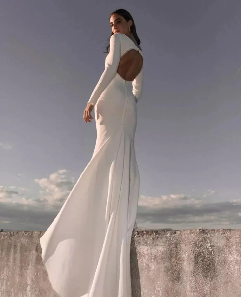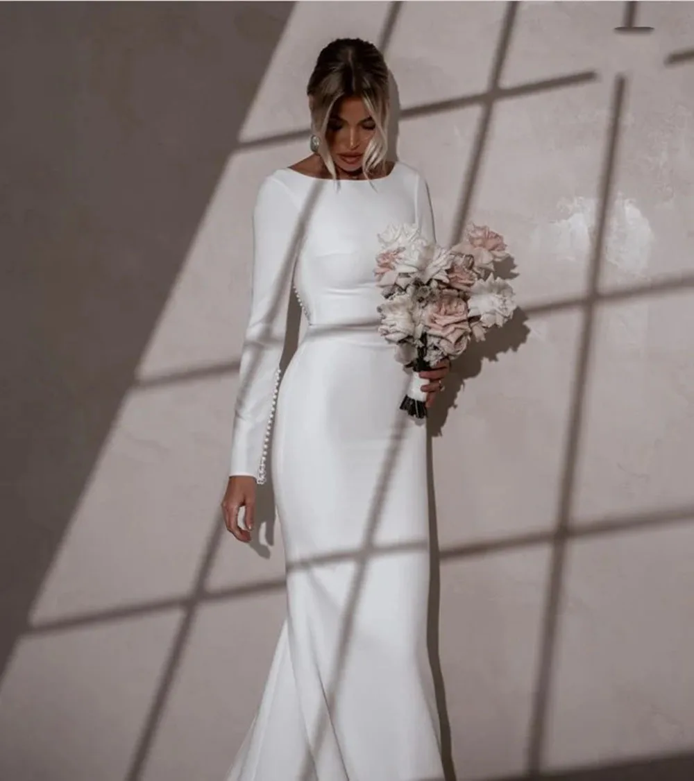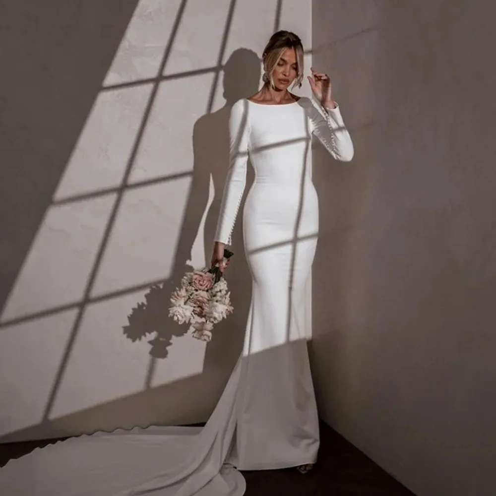 Bridal Dress 2024 Arabic Elegant Long Sleeve Muslim Bride Dress Mermaid Wedding
