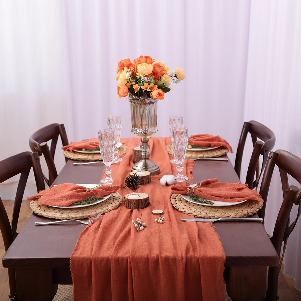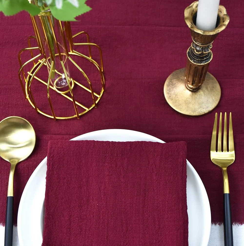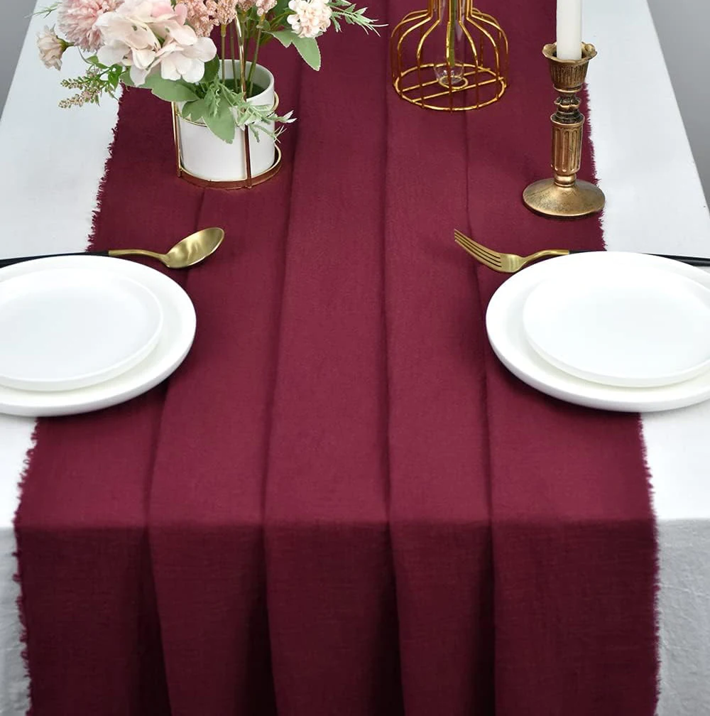 Burgundy Table Runner 100% Cotton Gauze for Wedding Decoration Birthday Parties