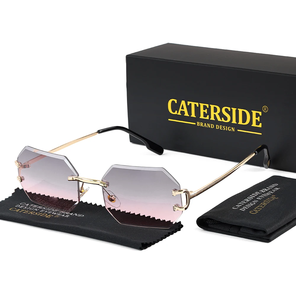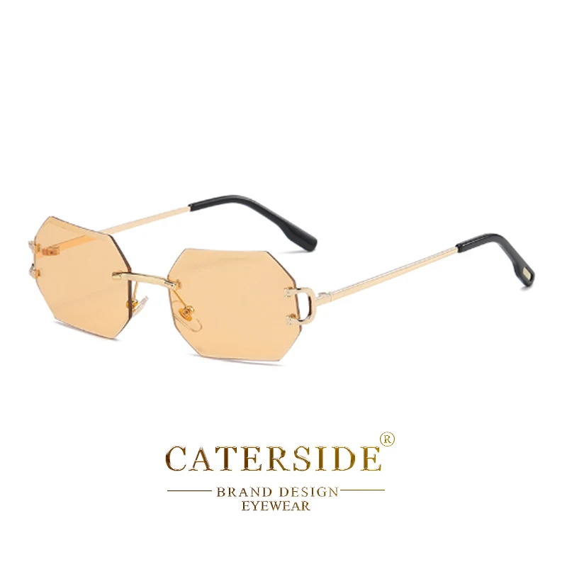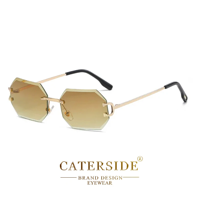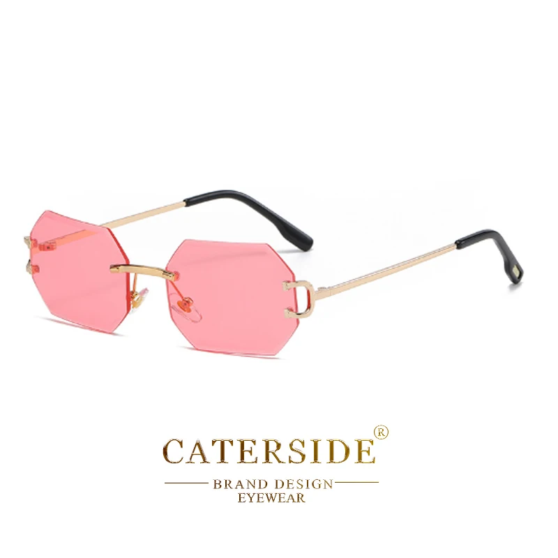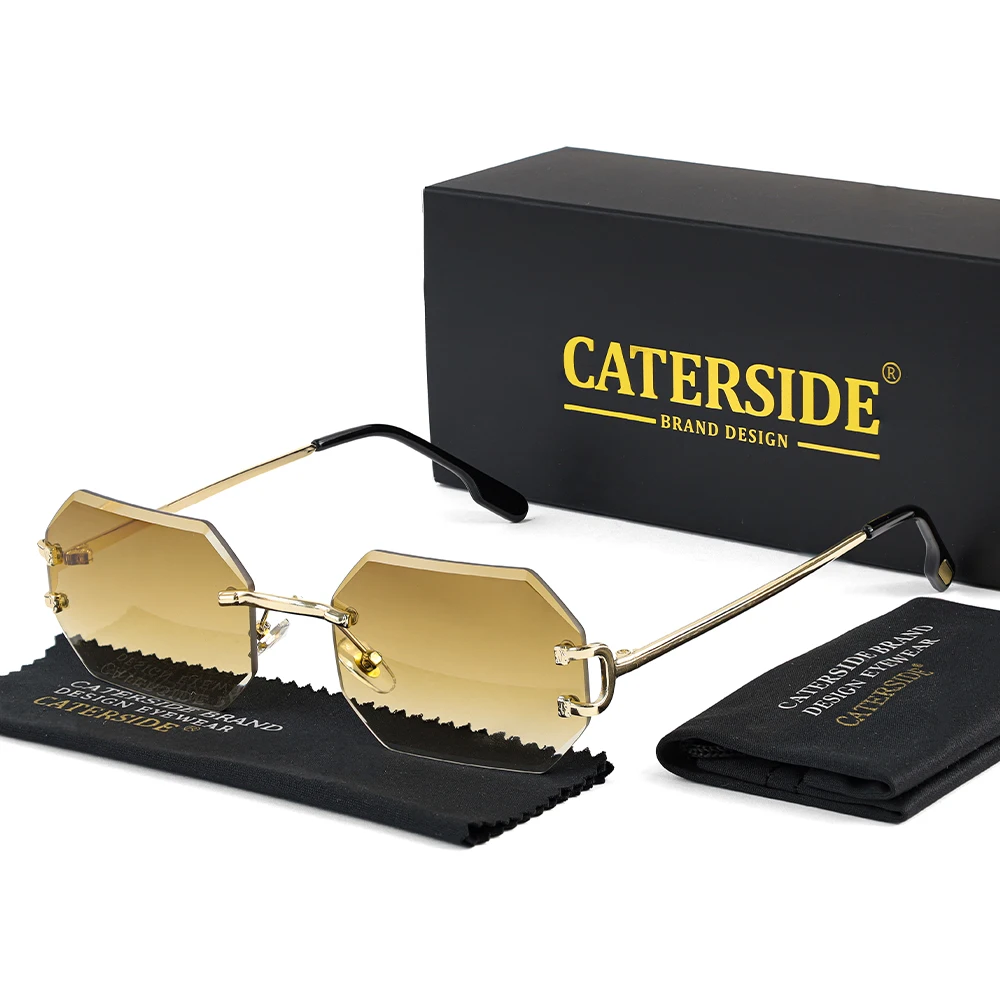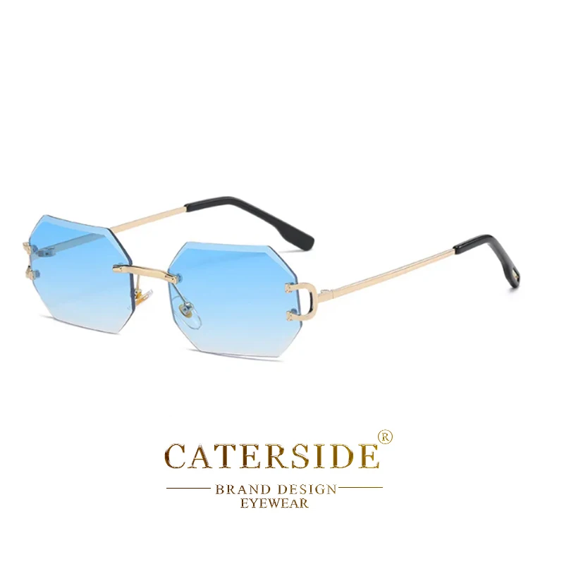 CATERSIDE Rimless Polygon Men's Sunglasses Octagonal Vintage Shades Gradient Tra
