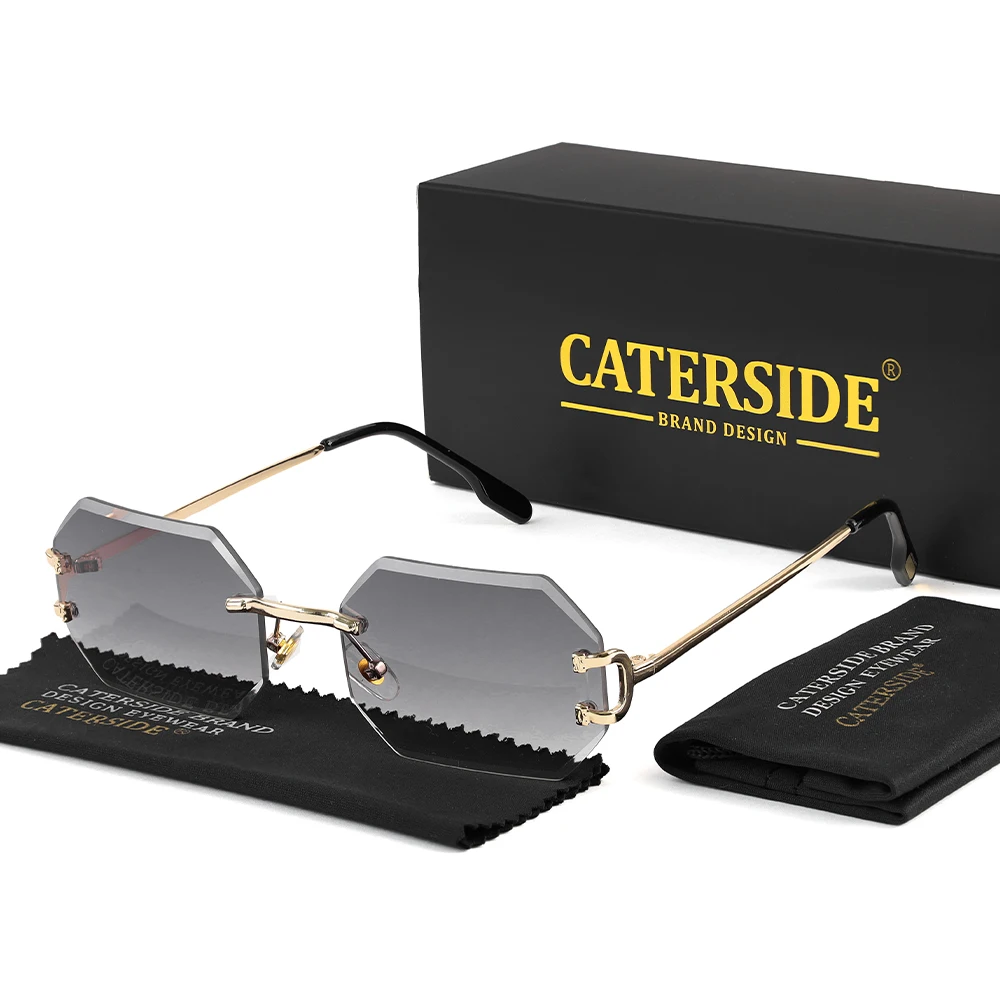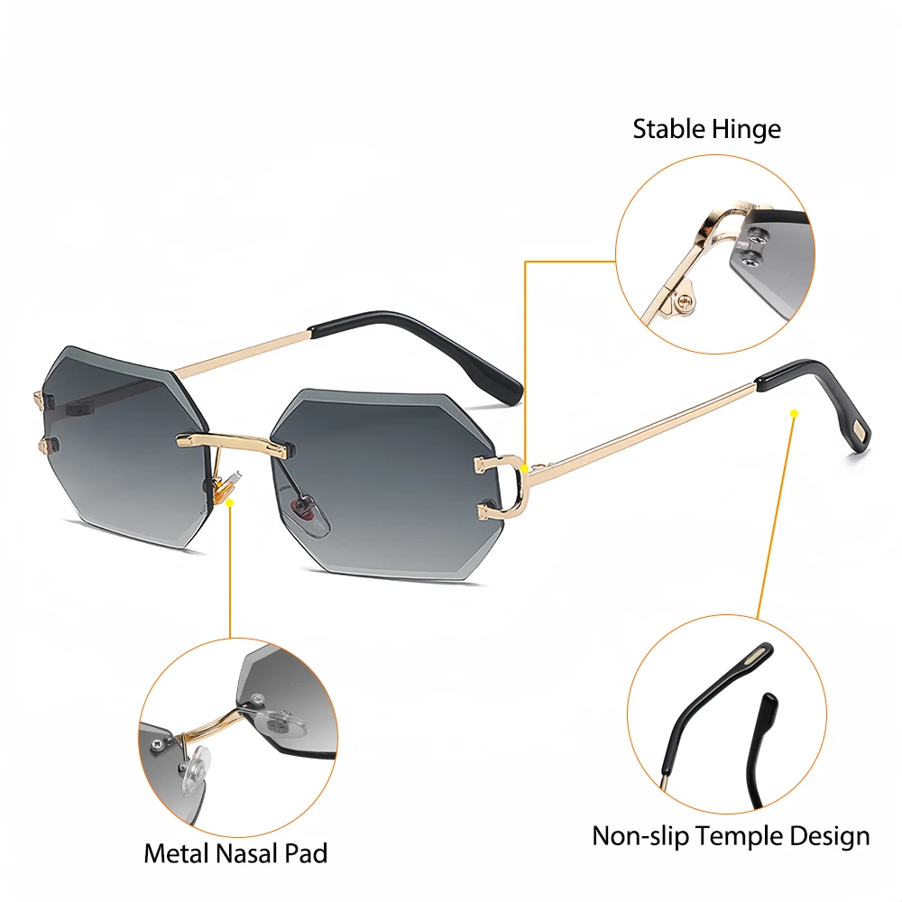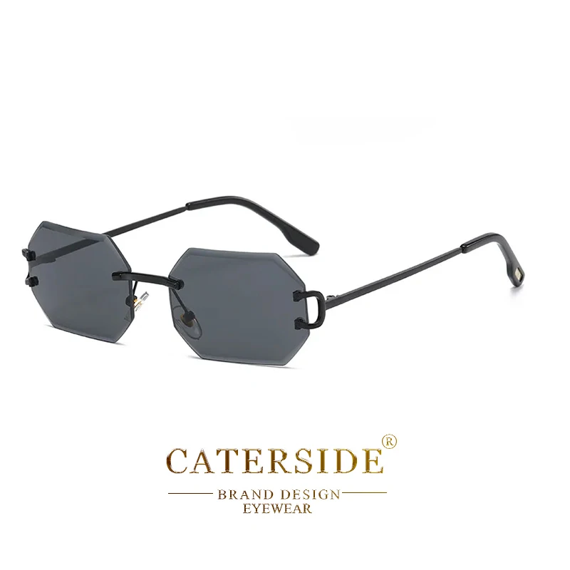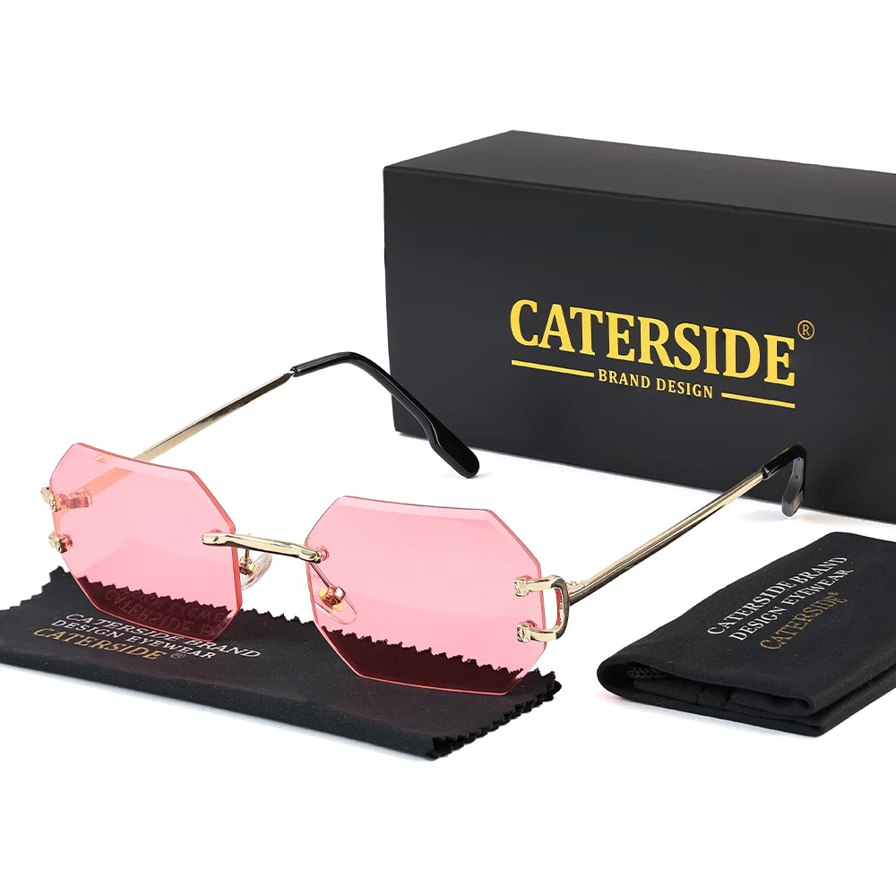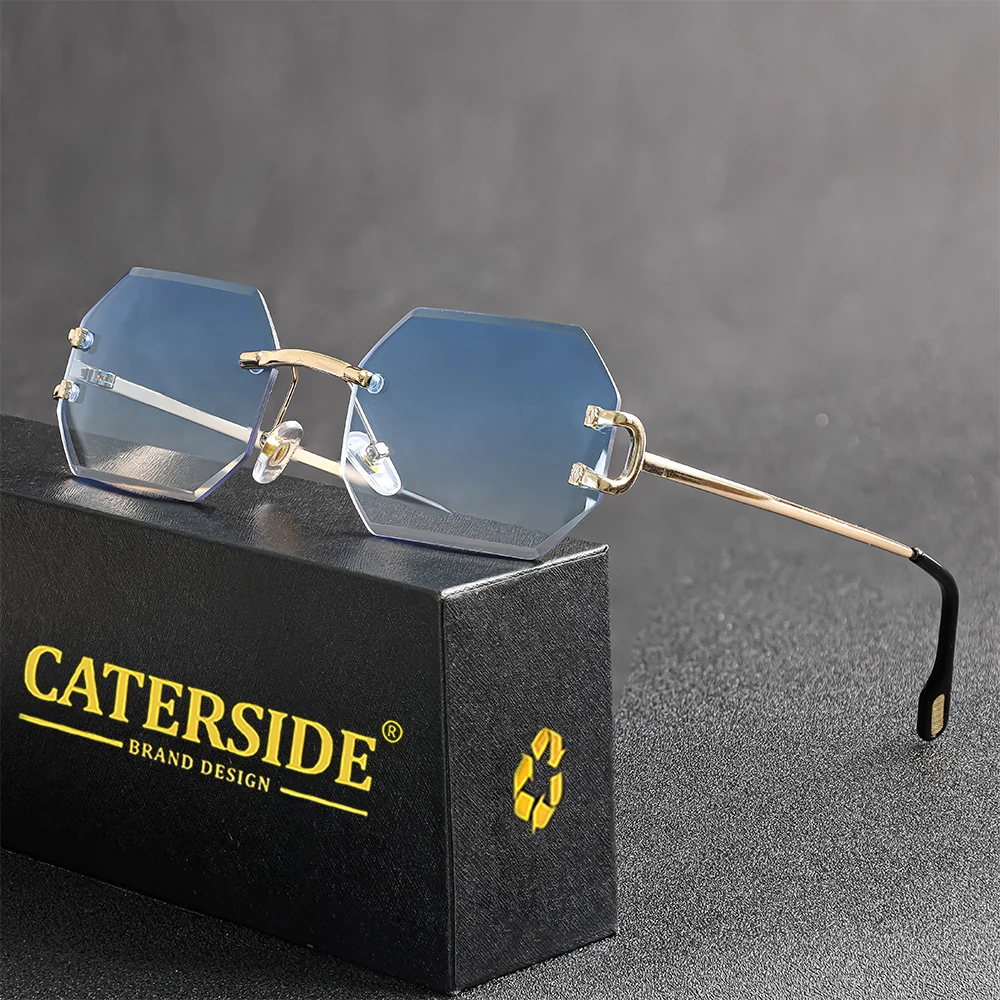 CATERSIDE Rimless Polygon Men's Sunglasses Octagonal Vintage Shades Gradient Tra