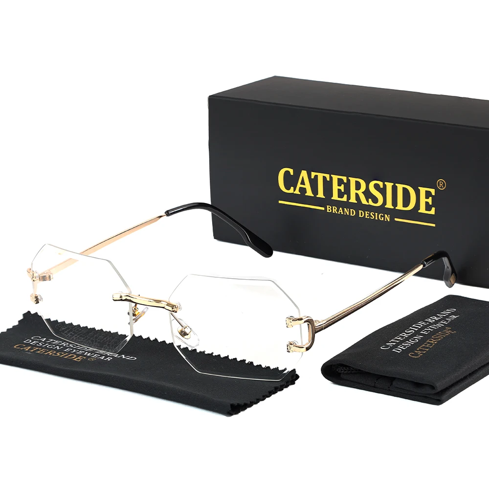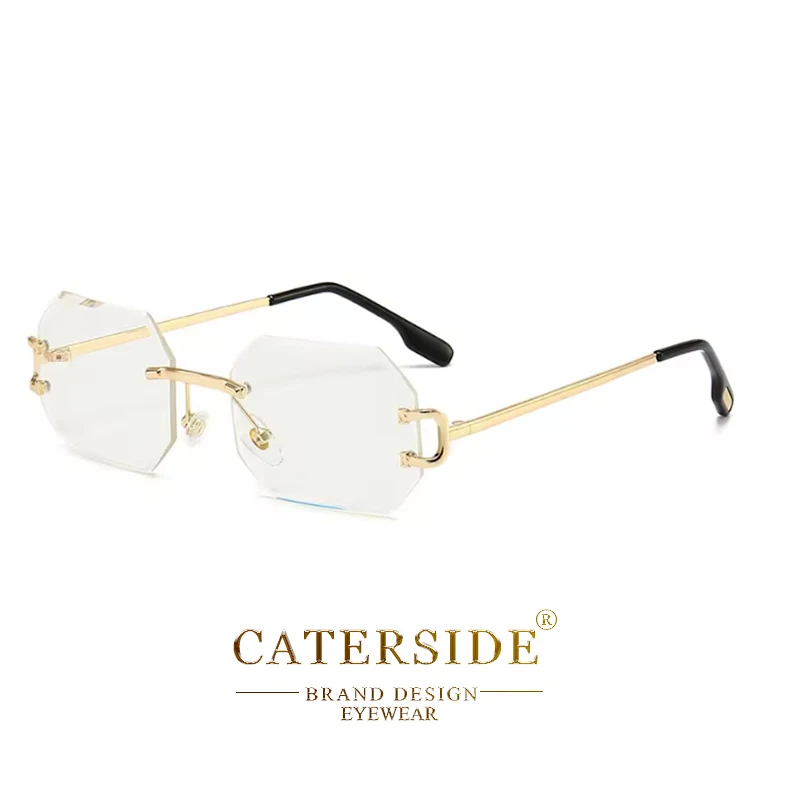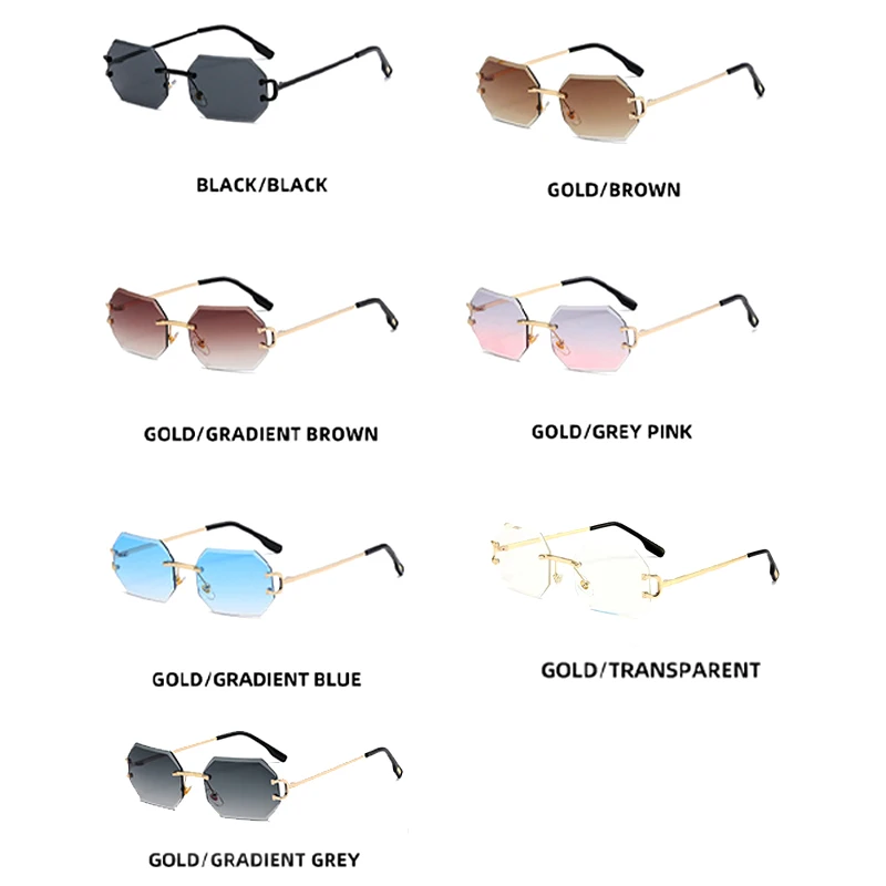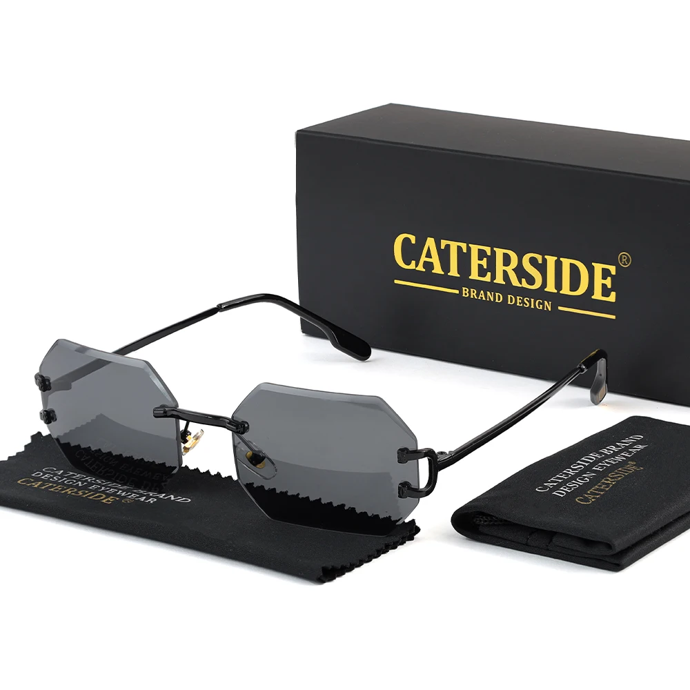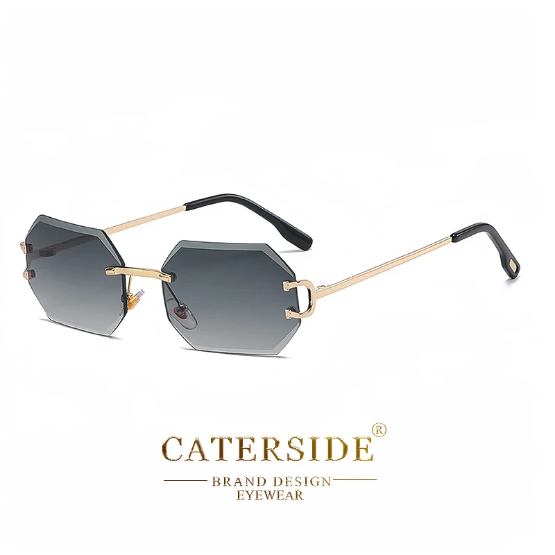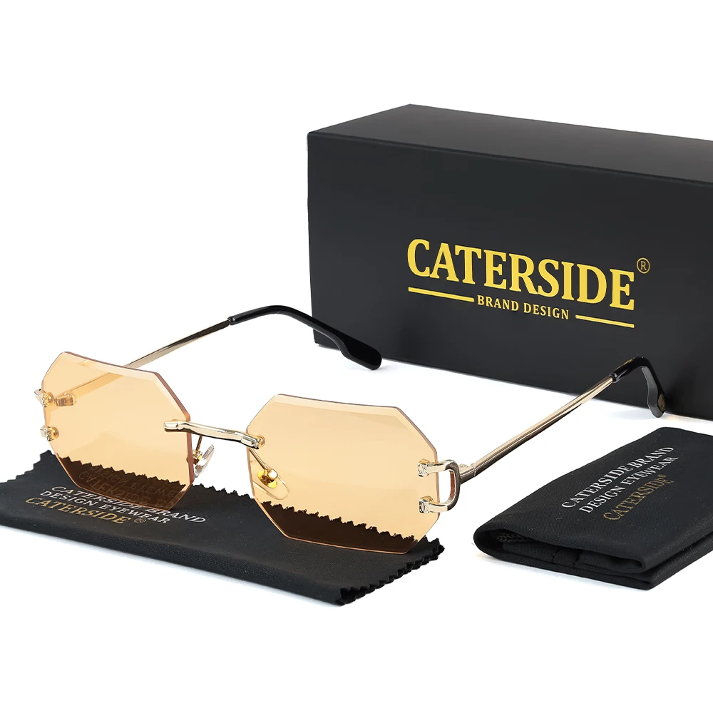 CATERSIDE Rimless Polygon Men's Sunglasses Octagonal Vintage Shades Gradient Tra