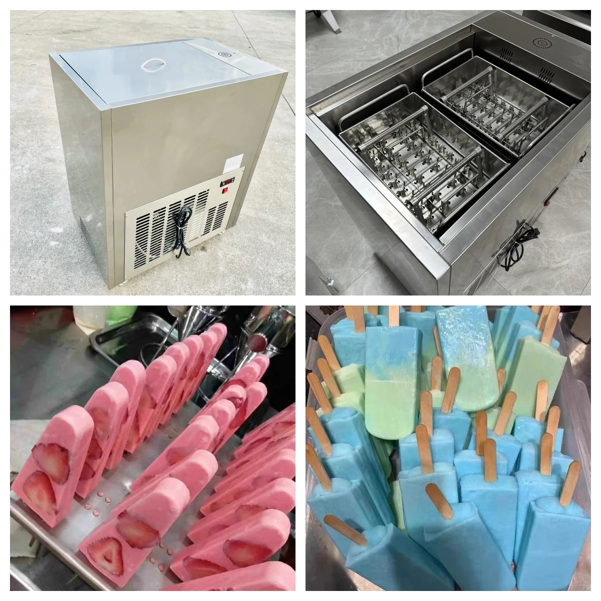 3.Perfect air conditioner to make sure its efficiency. And more moulds will increase the production , you can produce more than 48000pcs popsicles one day.