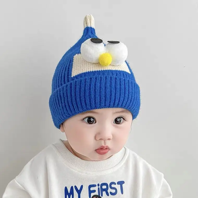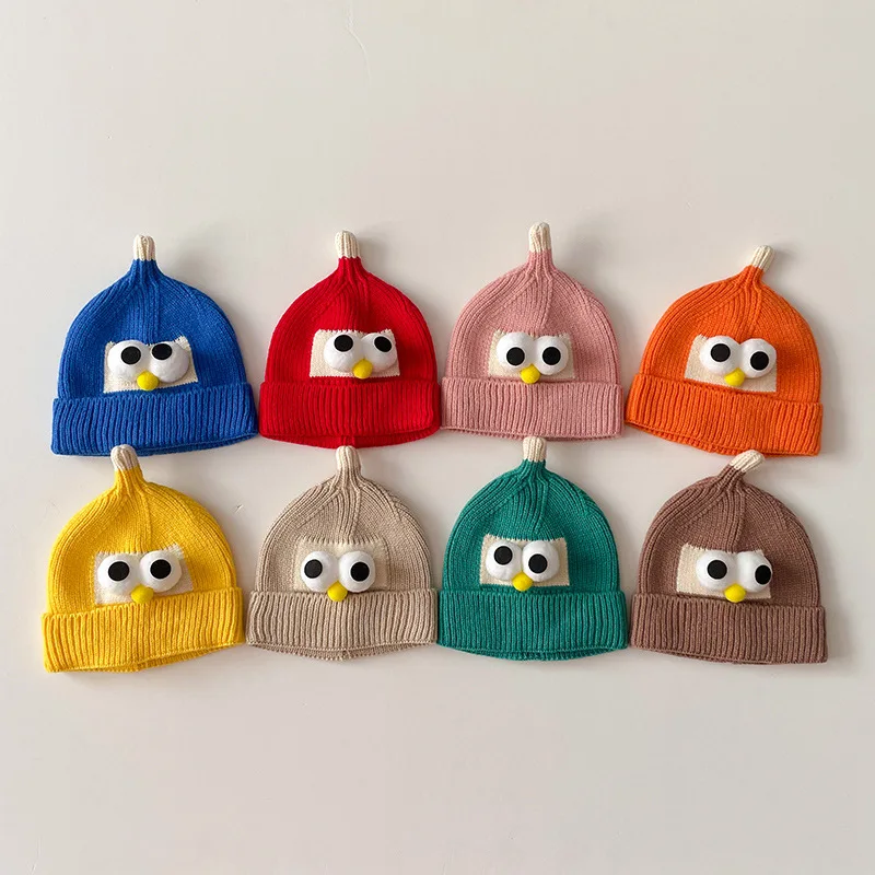 Cute Baby Winter Beanie Cap Cartoon Big Eye Knitted Pointed Hat For Infant Toddl