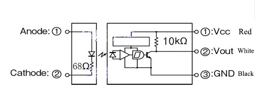 The voltage between is 5V, and when there have an obstacle, the voltage is 0V