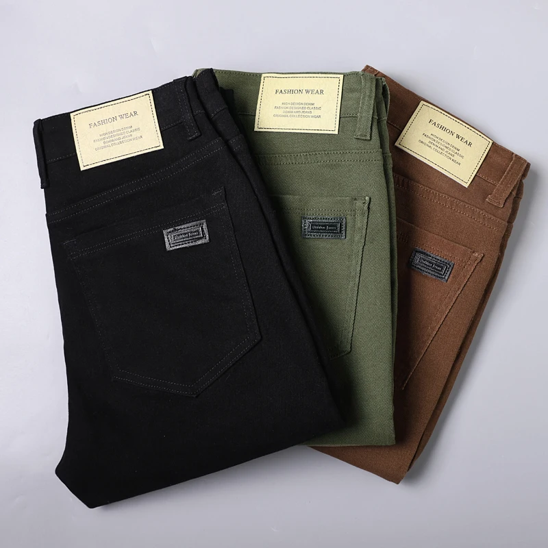 Denim Jeans For Men Coffee Green Black Straight Cotton Stretch Comfort Casual Pa
