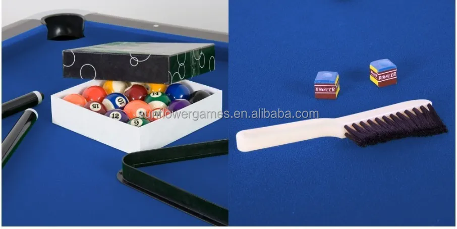 Model Number SFV-210108-1 Sport Pool Pocket Material Plastic Rail Material MDF Cushion Material MDF Leg Material L-shaped MDF with PVC laminated Size 213X120X81CM Net Weight (kg) 125 Gross Weight (kg) 130 is_customized yes Gender Unisex Item name High quality billiard pool table Accessories Included