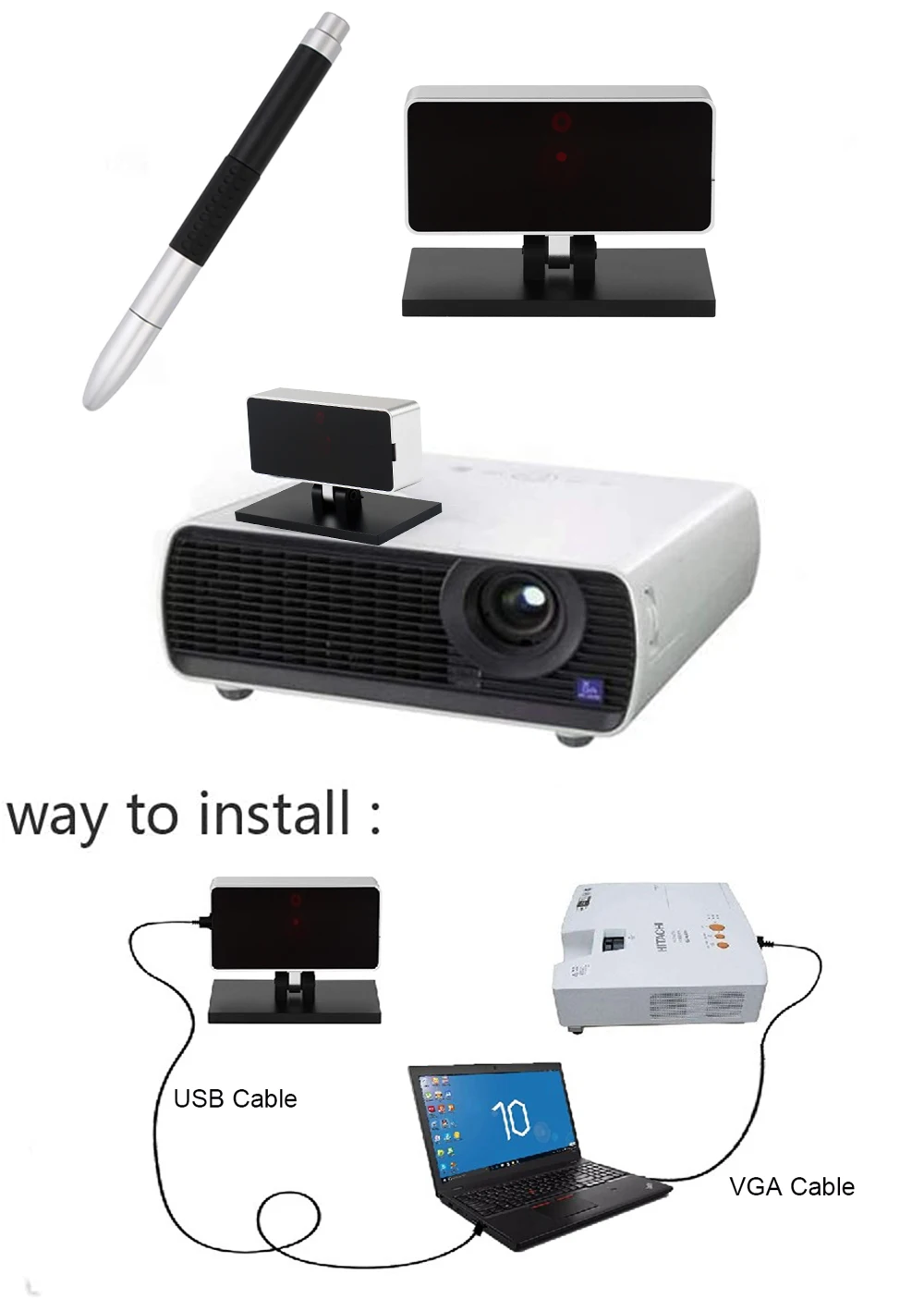 Can work with any projectors, no matter what brand, no matter what configuration, it can work perfectly to realize interactive function.