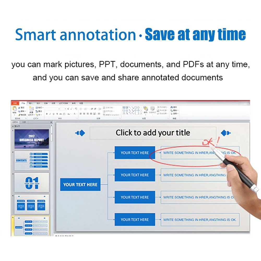Turn any flat surface to an interactive digital whiteboard by connecting to your PC (with Windows XP, Windows 7, Windows 8, Windows10).