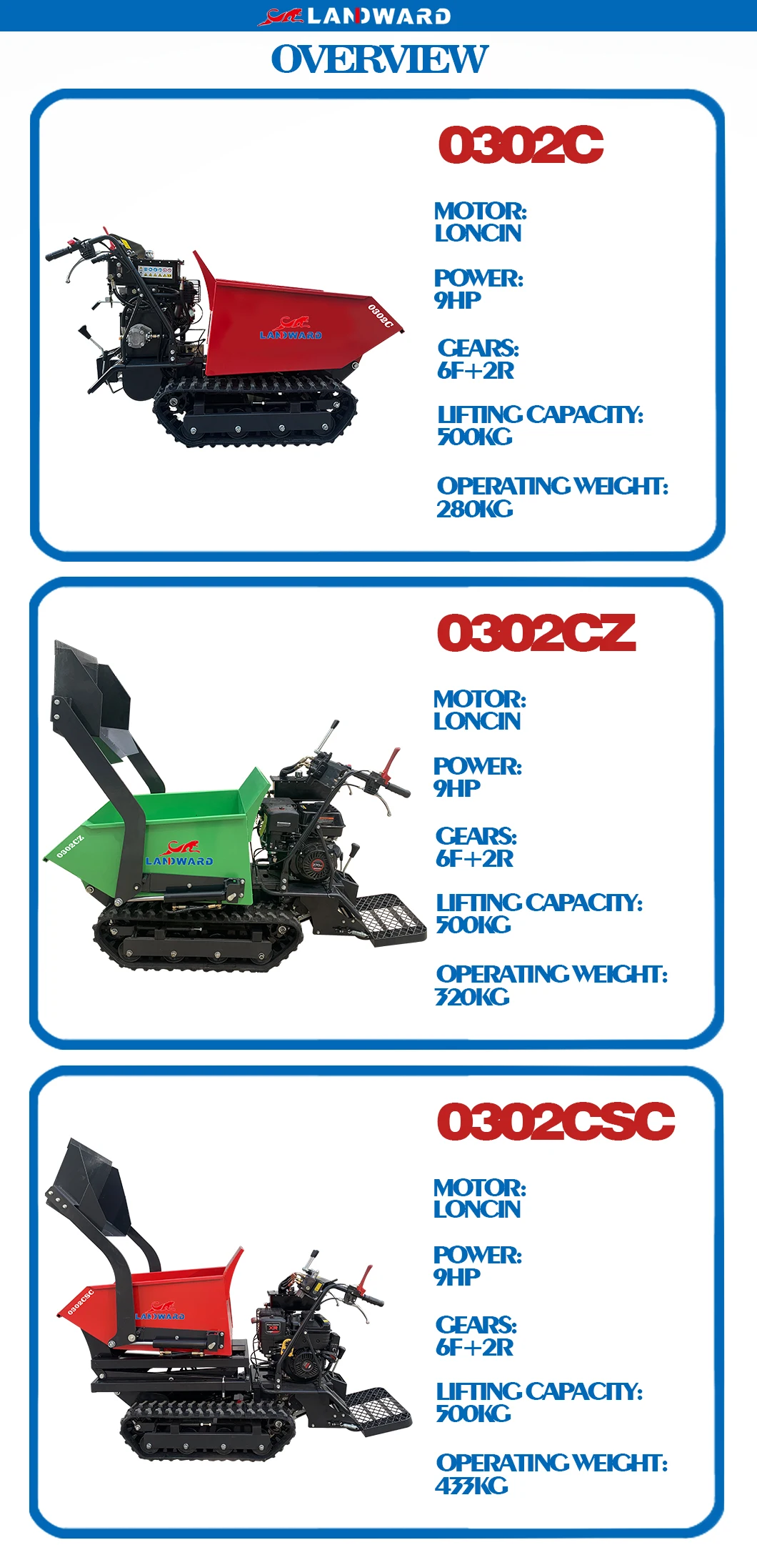 LANDWARD Factory Customized High-quality self-loading mini dumper 500kg gasoline