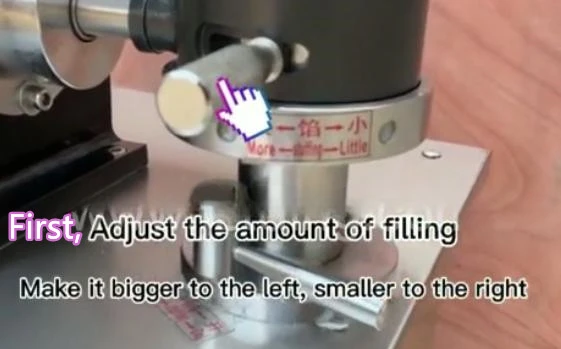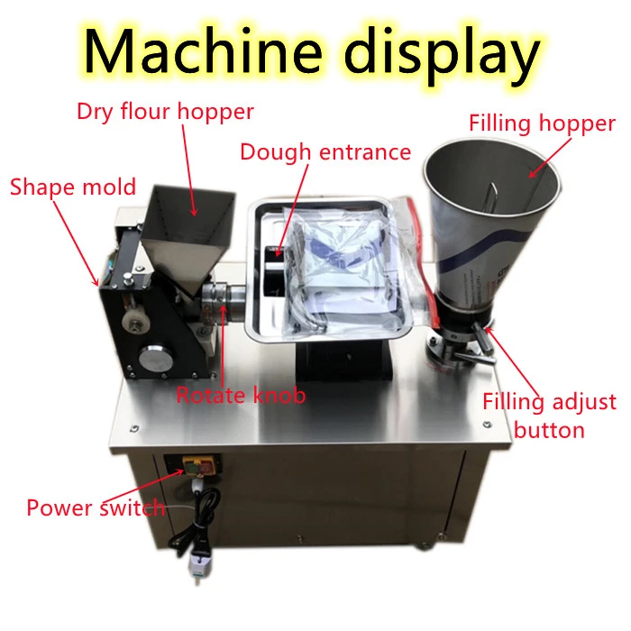 Filling adjust buttonRotate left or right to adjust filling amount according to you and your customer's taste preference,Rotate knobAdjust the thickness of the dough with the Rotate knob.The combination of Filling adjust button and Rotabte knob makes your product more perfect