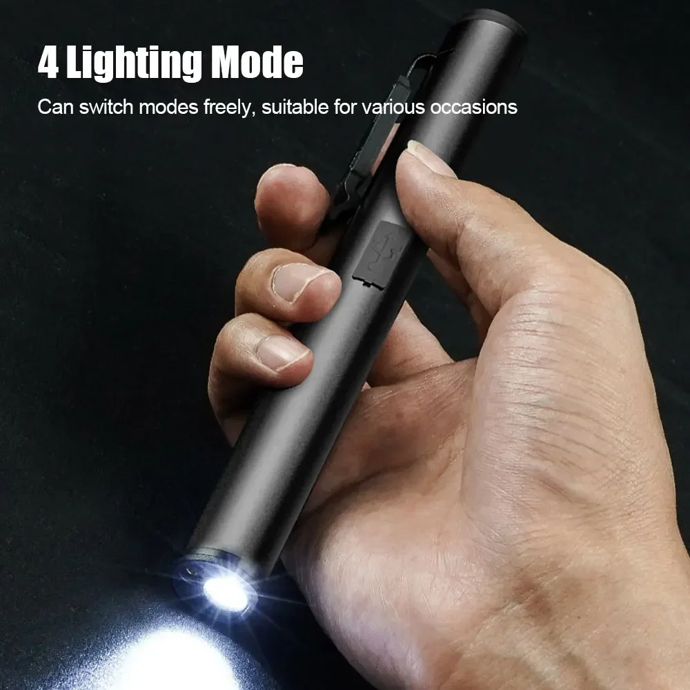 Multifunctional 4 in 1 LED Flashlight Mini USB Rechargeable 800mah Pen Clip Flas