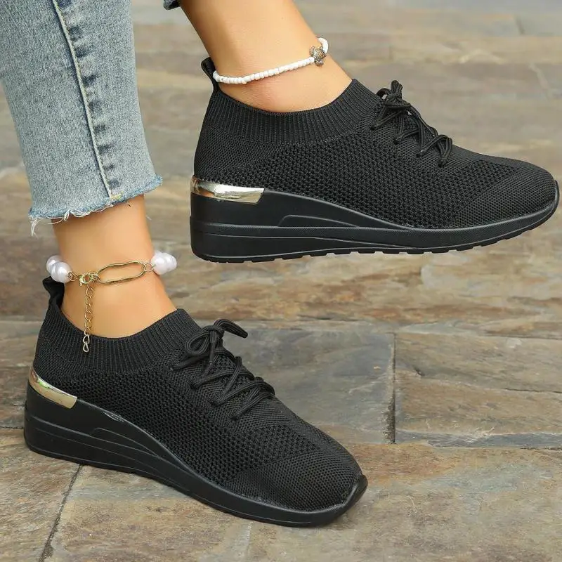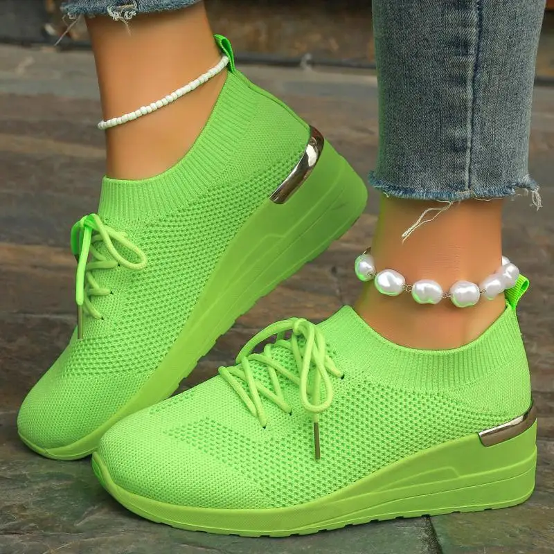 Orange Mesh Women Wedge Shoes Breathable Lightweight Spring Summer Sneakers Comf
