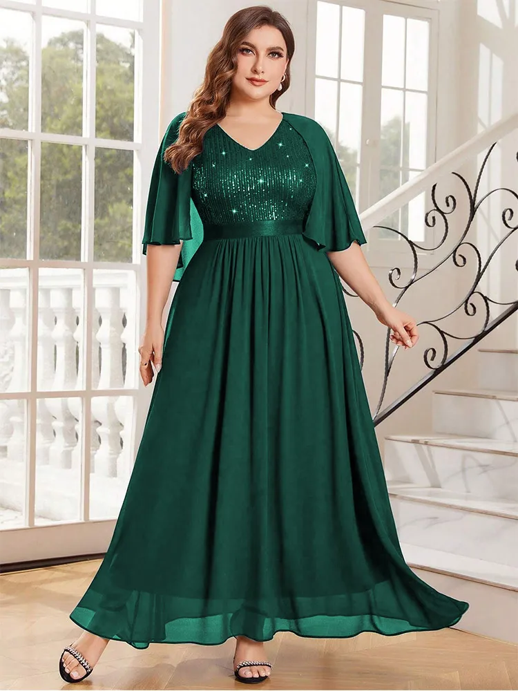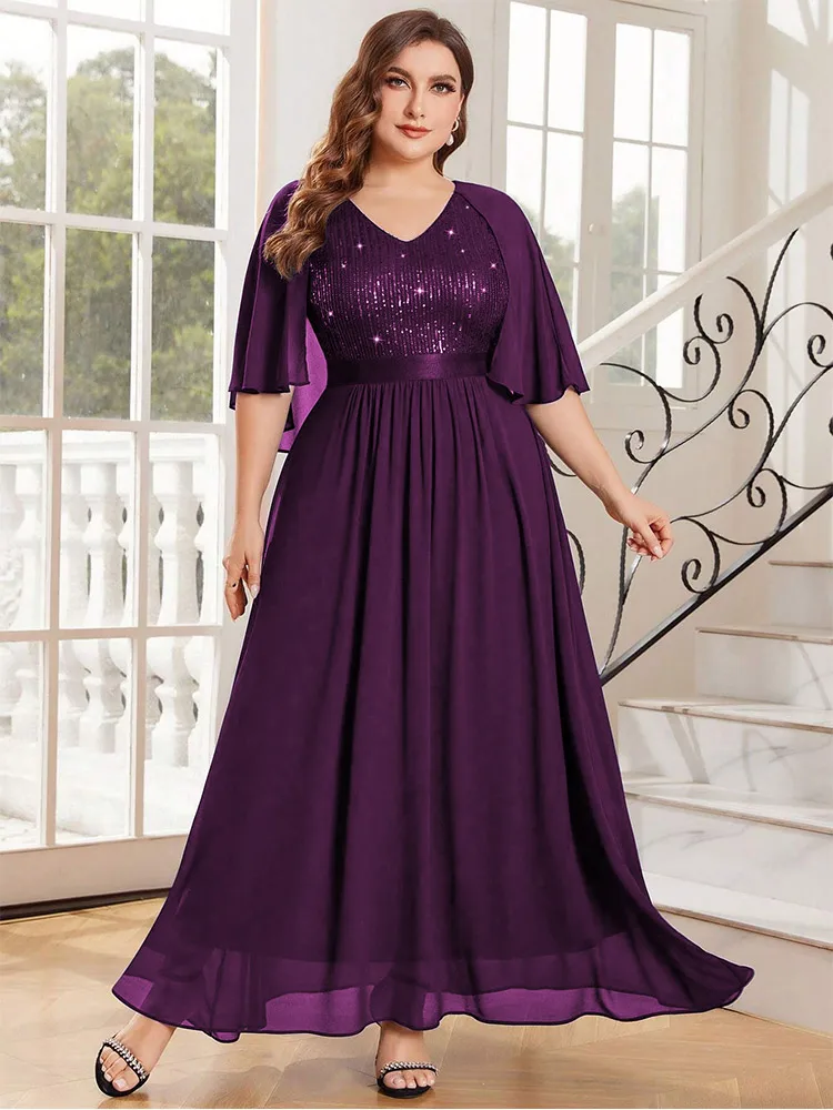 Plus Size Chiffon Royal Blue Sequins Long Bridesmaid Banquet Evening Dress Elega