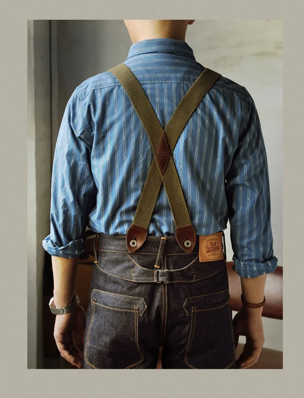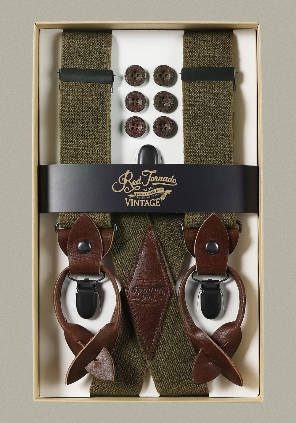 Red Tornado Men's X-Back Suspenders with Clips Adjustable Elastic Vintage Style