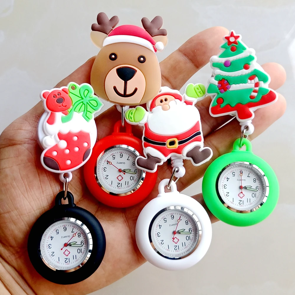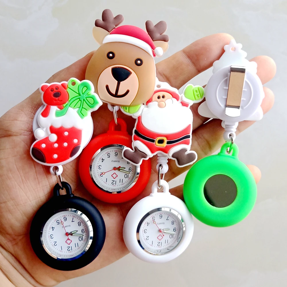 Retractable Christmas Gifts Nurse Doctor Clips FOB Pocket Watches Hospital Santa