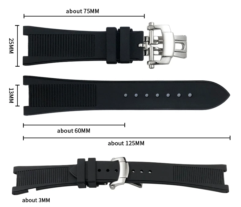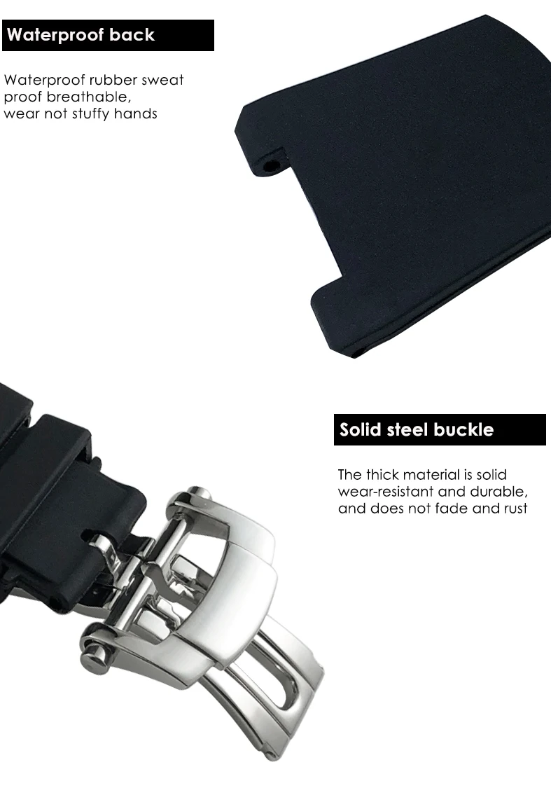 Rubber Silicone 25mm 13mm Watchband for Patek 5711 5726 Philippe PP NAUTILUS Fol