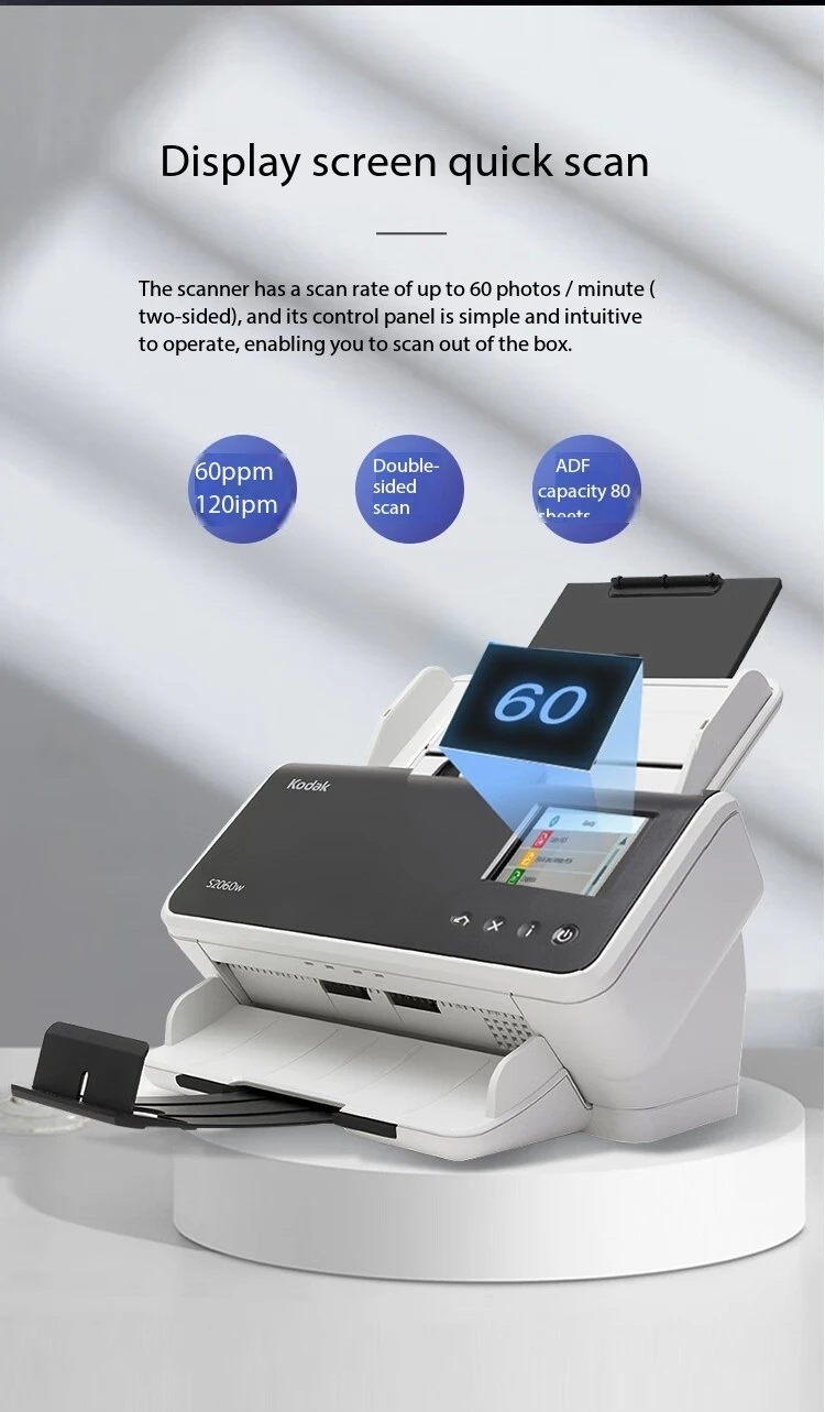 single page black and white/gray/color speed "8 seconds/sheet (200dpi and 300dpi) Recommended number of daily scans Up to 9,000 pages per day Paper feeder capacity Up to 80 sheets of 80 g/m "(20 lb) paper can handle small paper blocks Such as A8, ID card, floating foot card and insurance card,