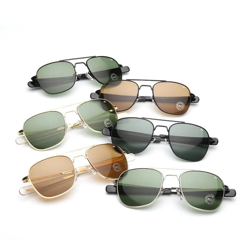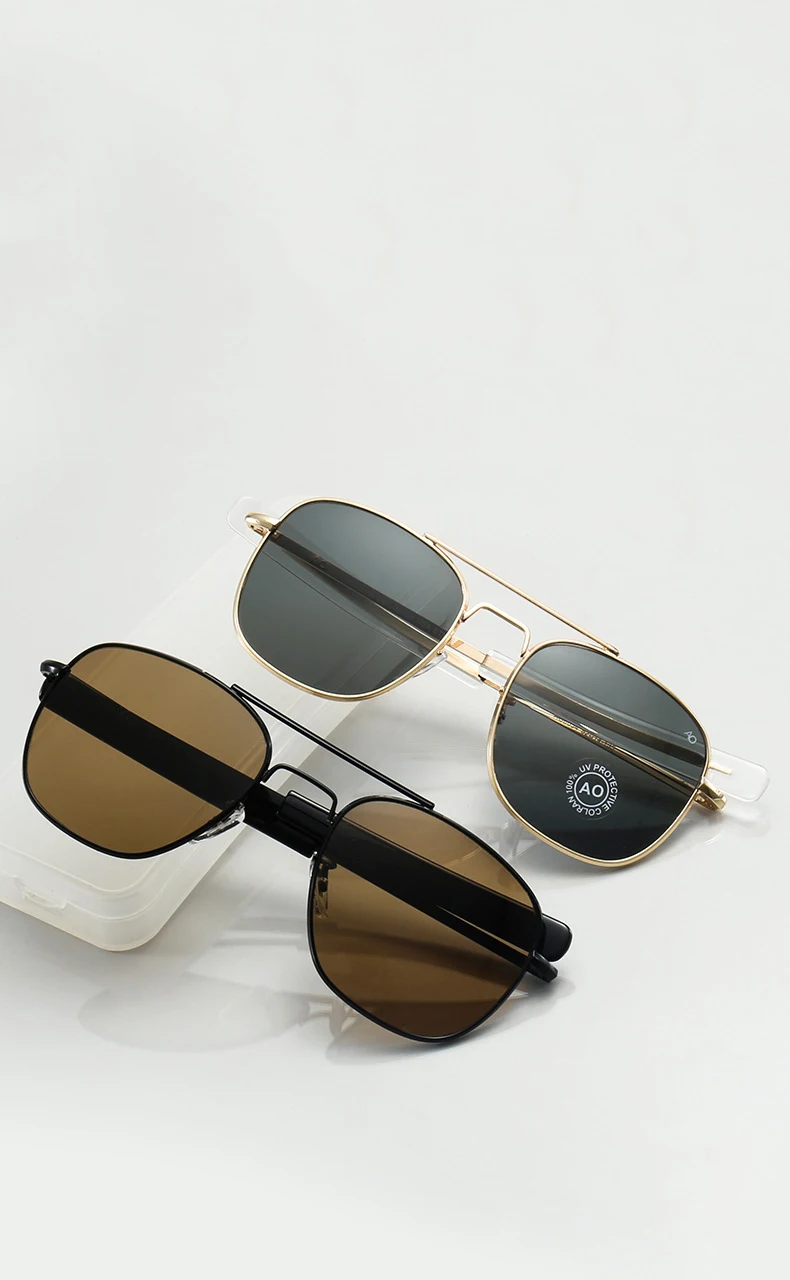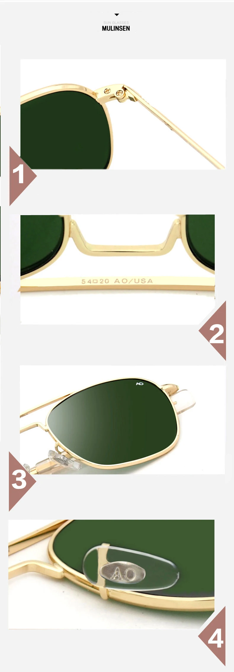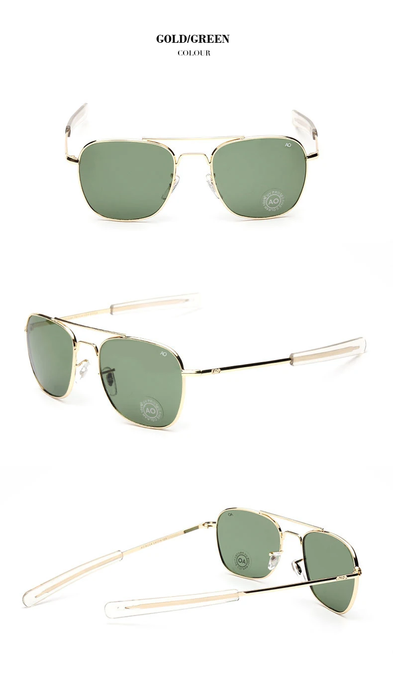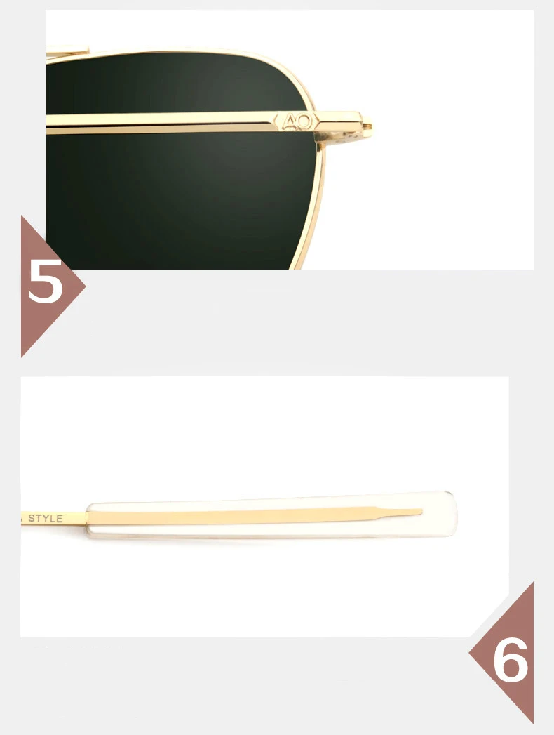 Square Men Glass Sunglasses Sunglasses Classic Metal Business UV400 Pilot AO Dec