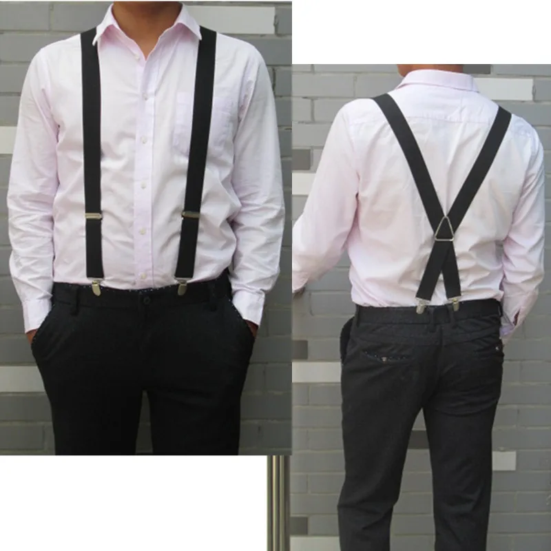 Suspenders for Men Wide X Back With 4 Strong Hooks 2.5cm Women's Pants with Adju