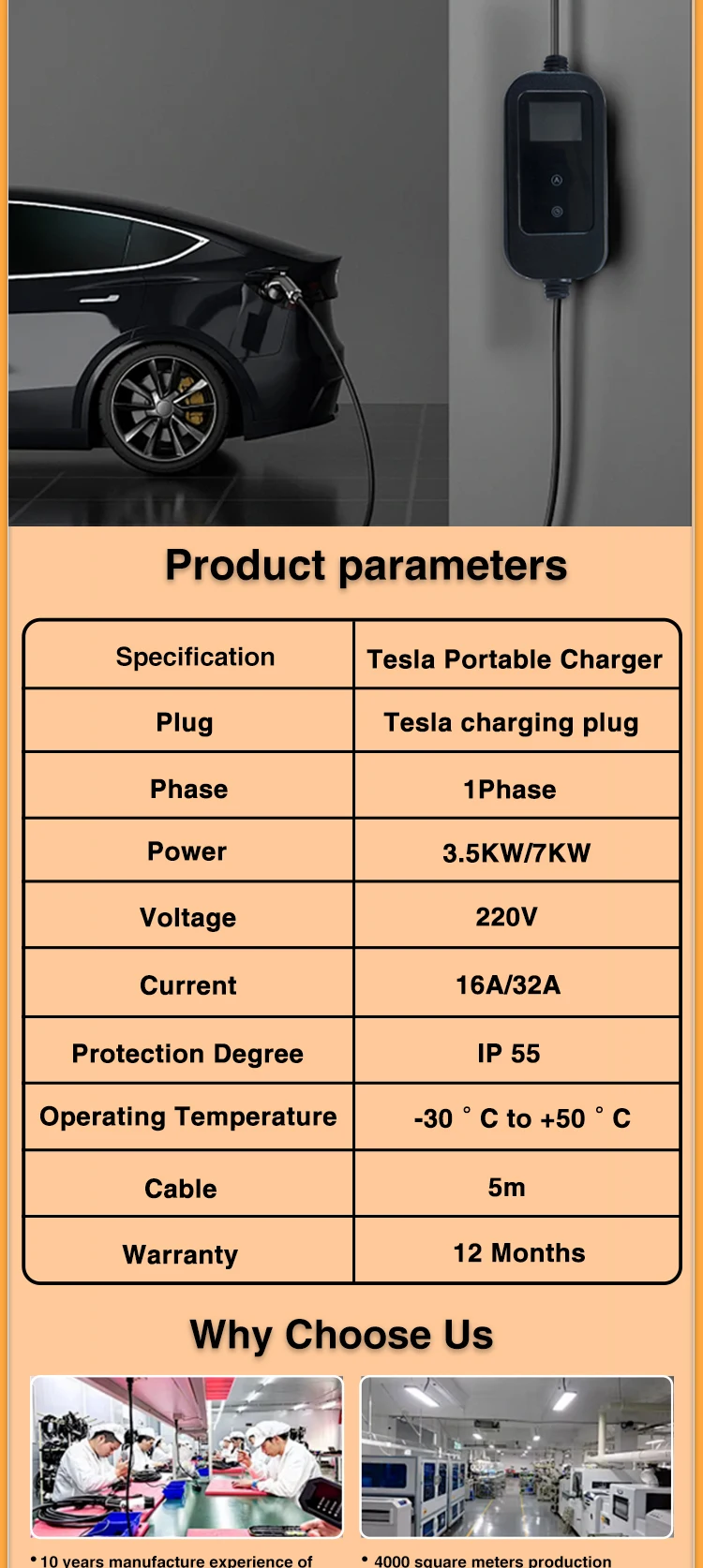 Tesla Portable EV Charger 3.5KW 7KW for NACS Model 3/X/Y/S With CEE Plug EVSE Ch
