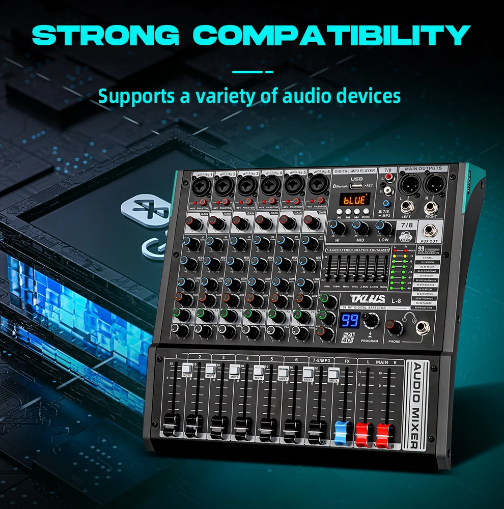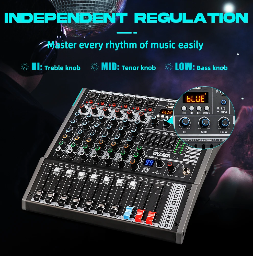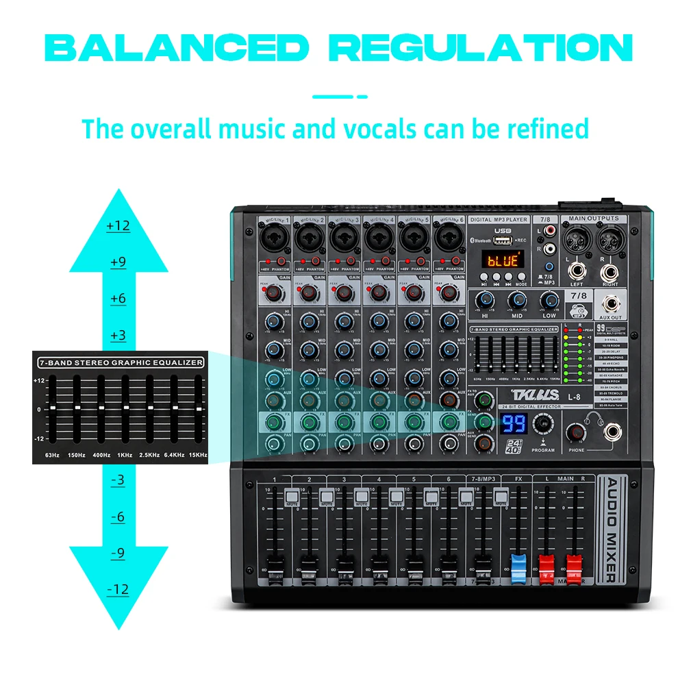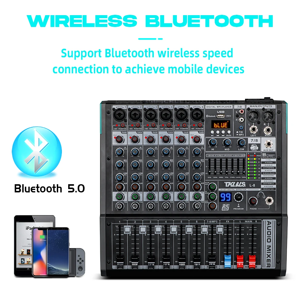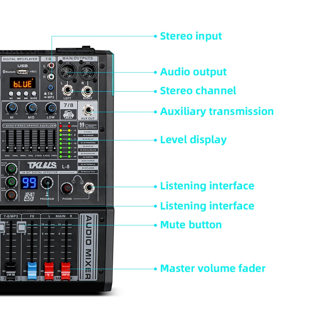 TKL L8 Professional 8 Channel Sound Mixer 99 DSP Effects DJ Mixing Console Bluet