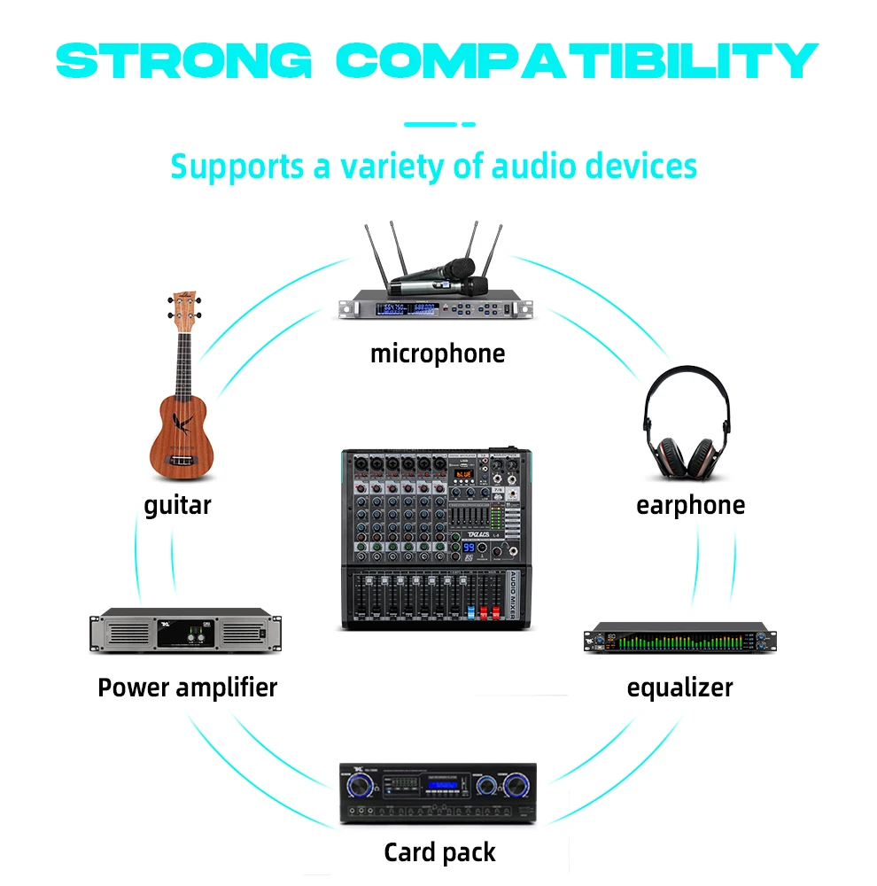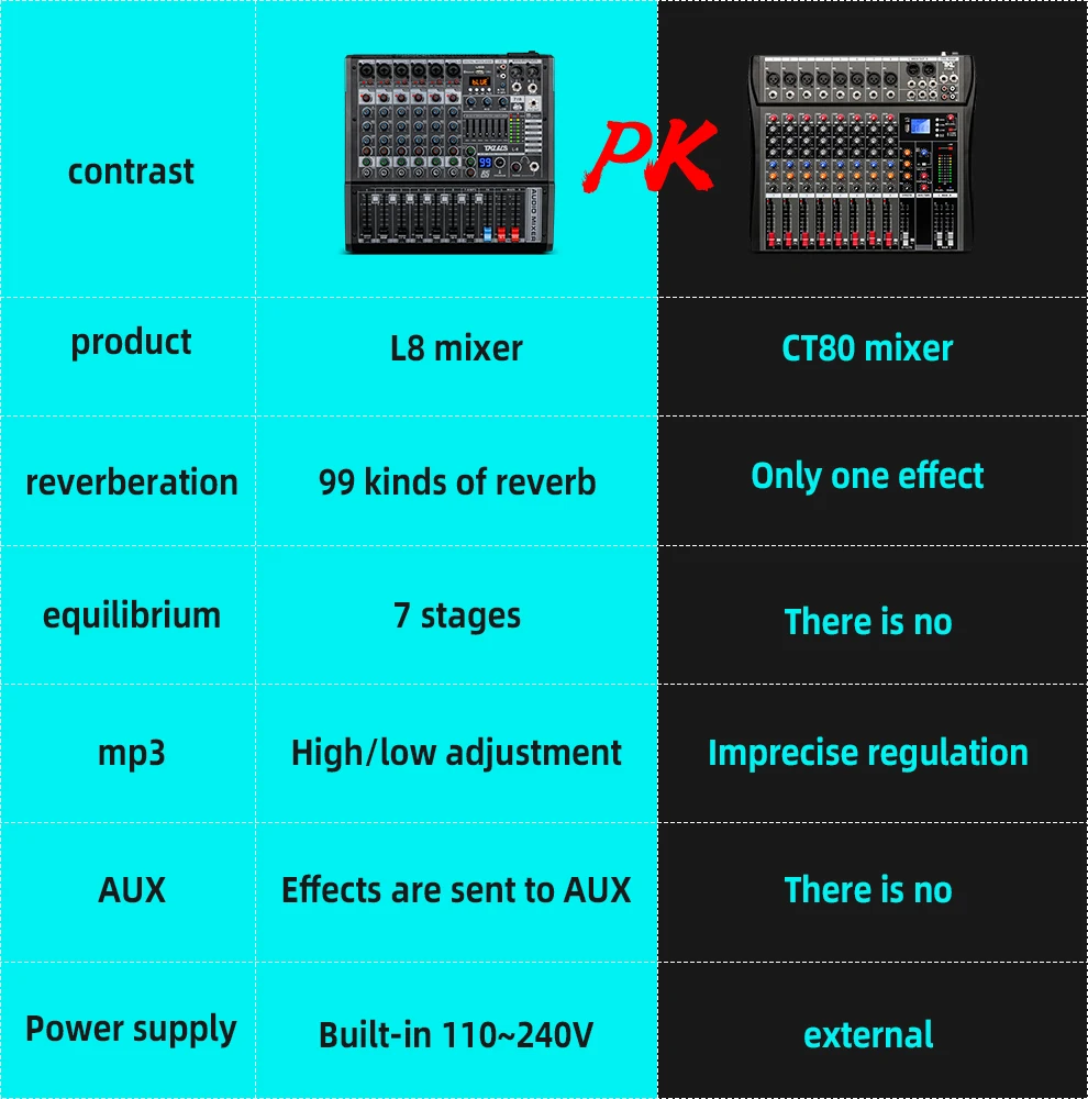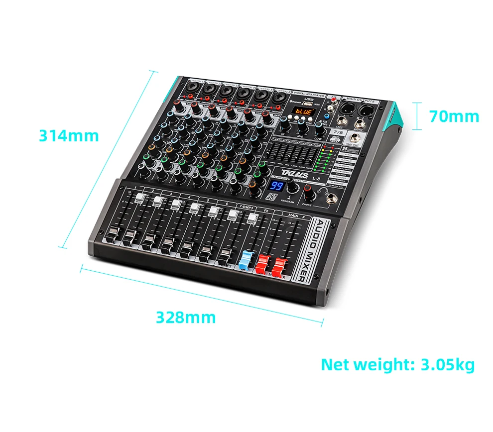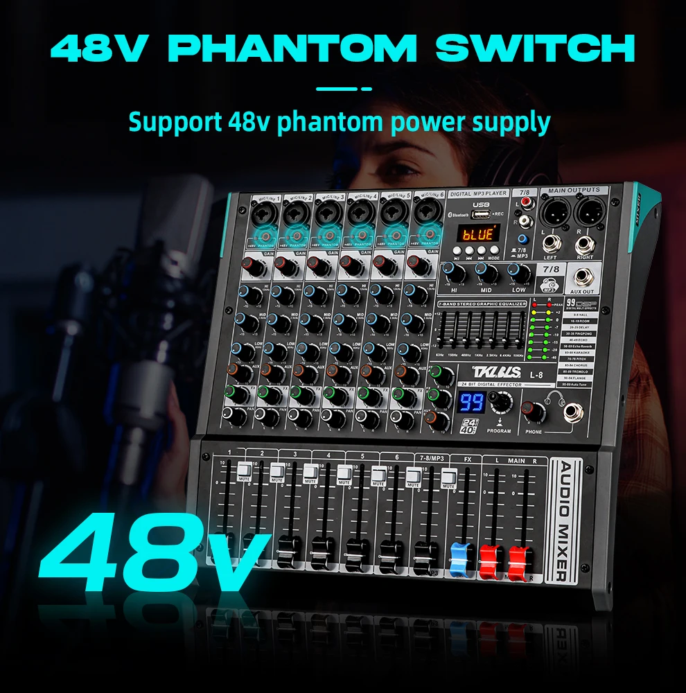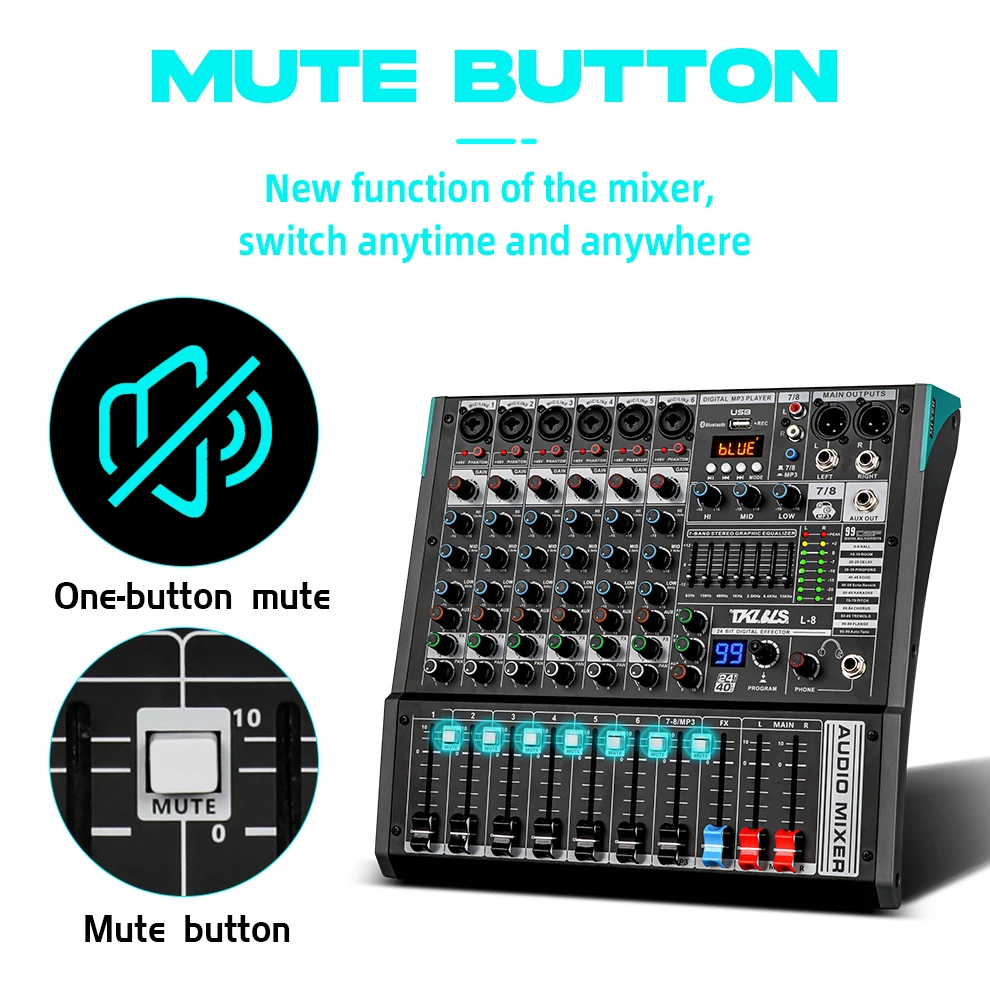 TKL L8 Professional 8 Channel Sound Mixer 99 DSP Effects DJ Mixing Console Bluet