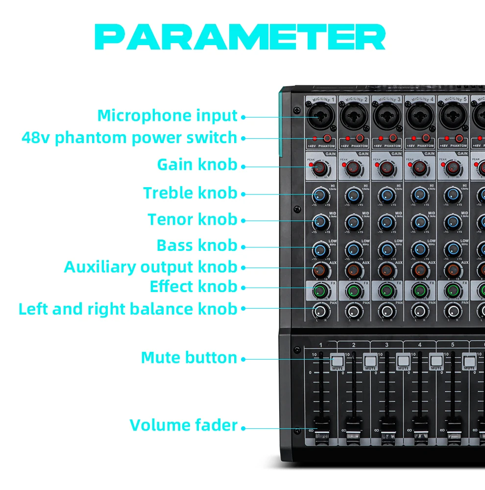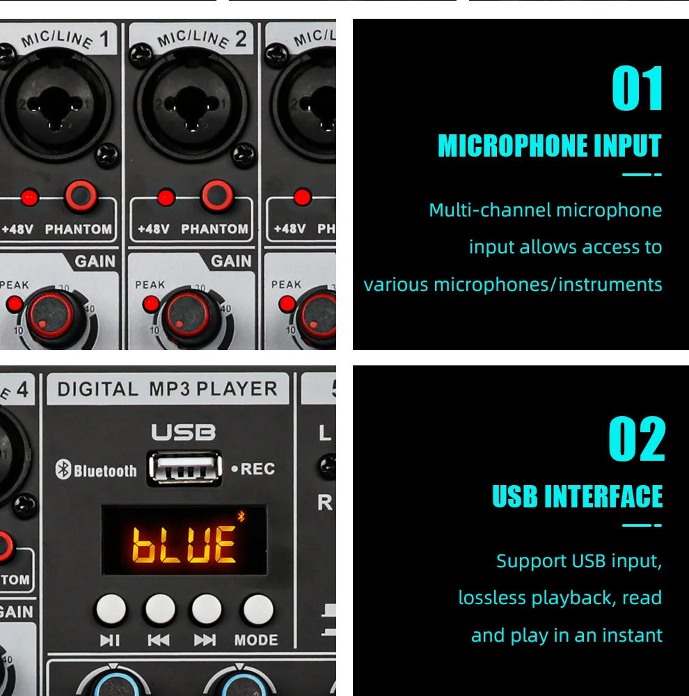 Audio Mixer: MP3 Computer 48V Phantom Audio Mixer