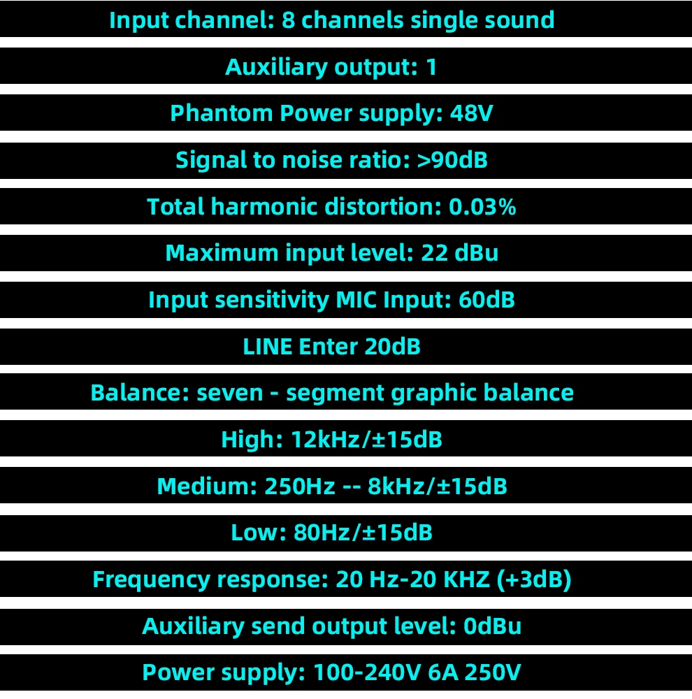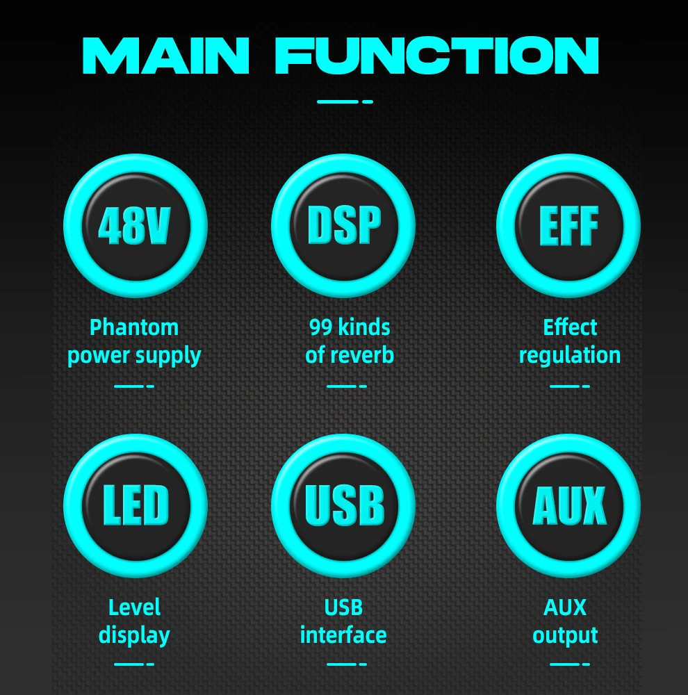 6 Channels Sound Mixing: 8 Channel Mixer 99 DSP Effect