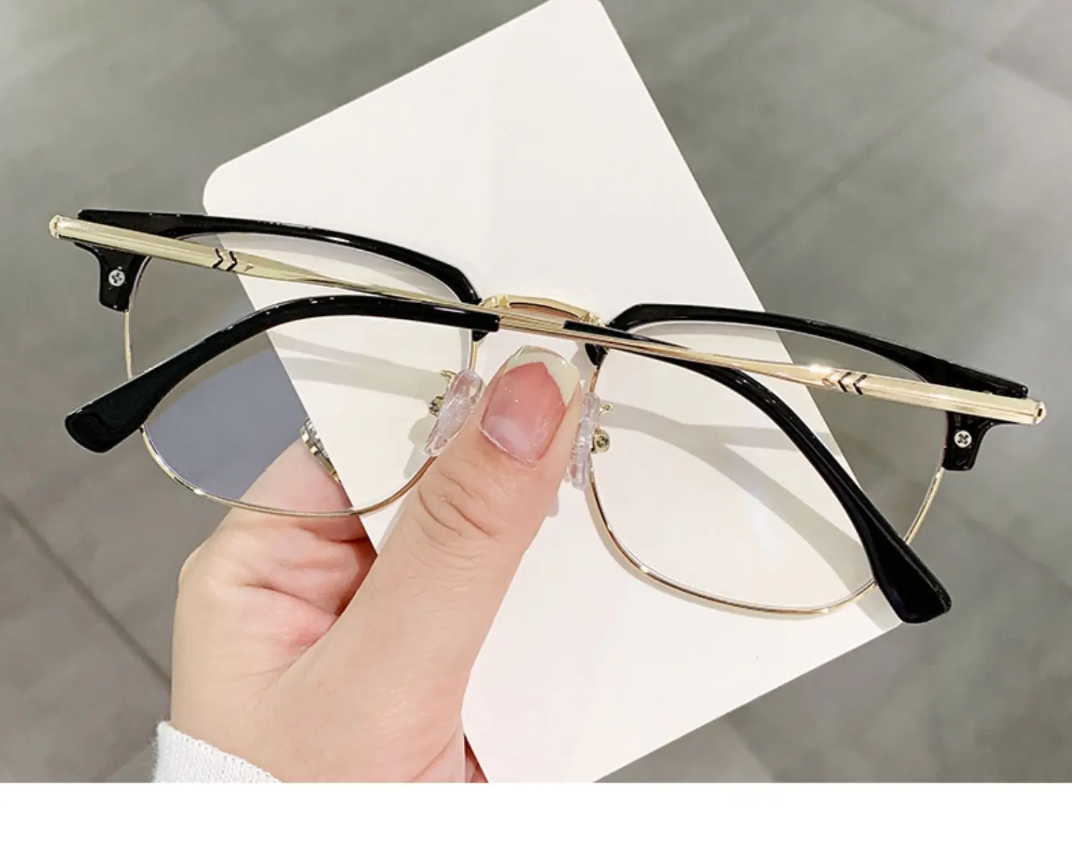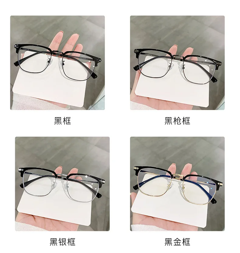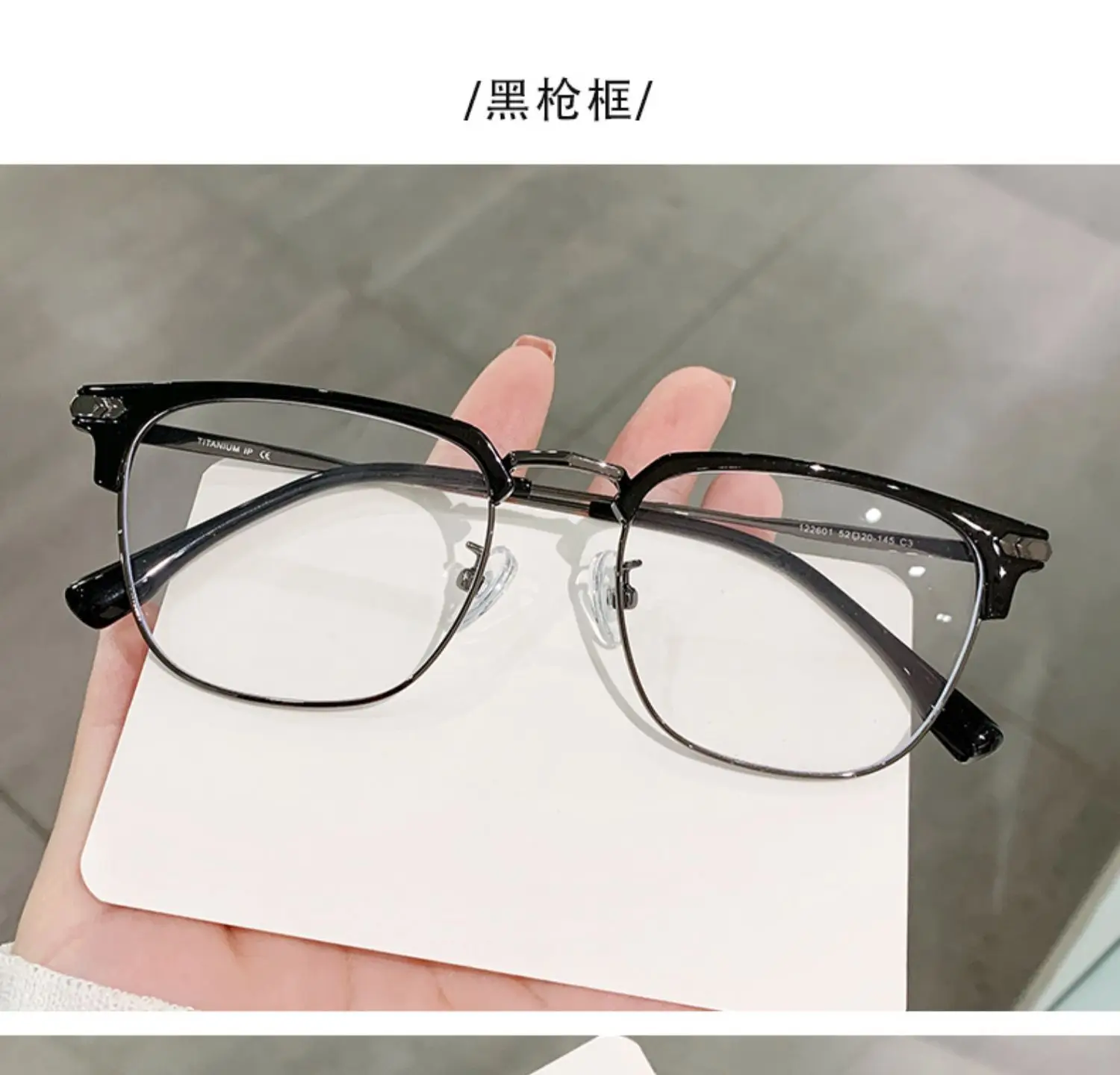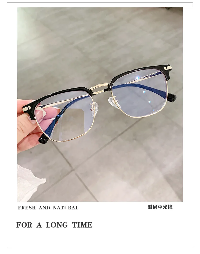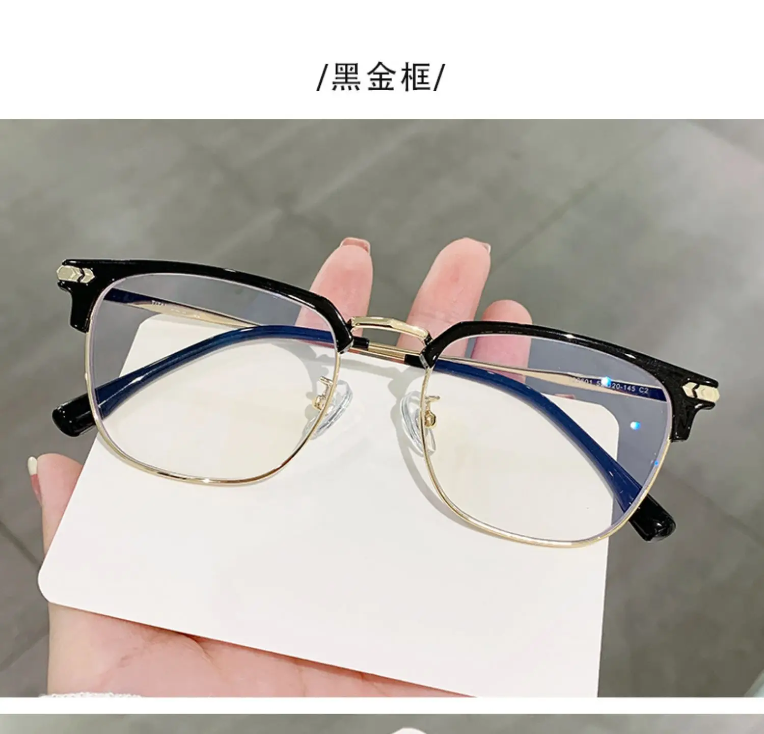 Trend Men’s Half Frame Myopia Glasses Blue Light Blocking Transparent Near Sig