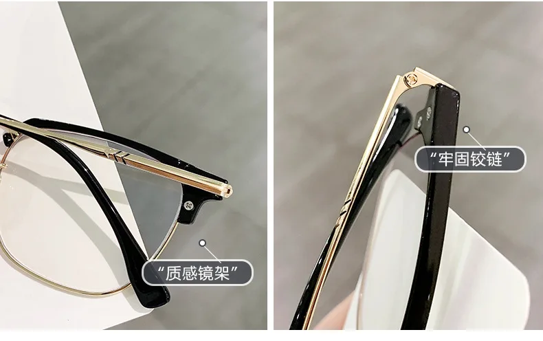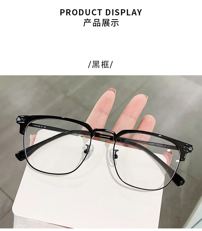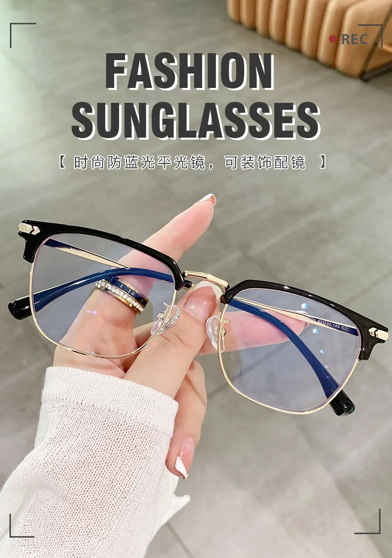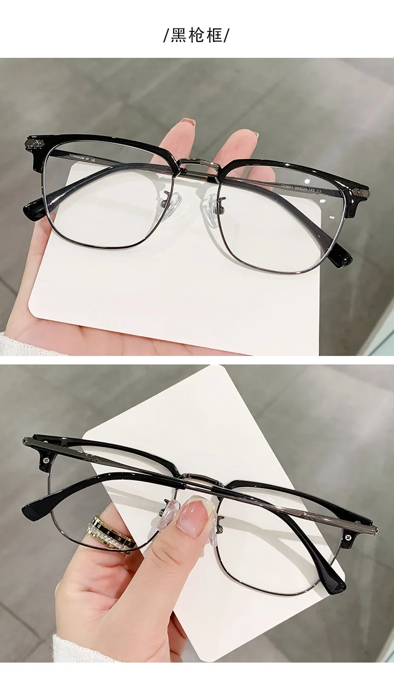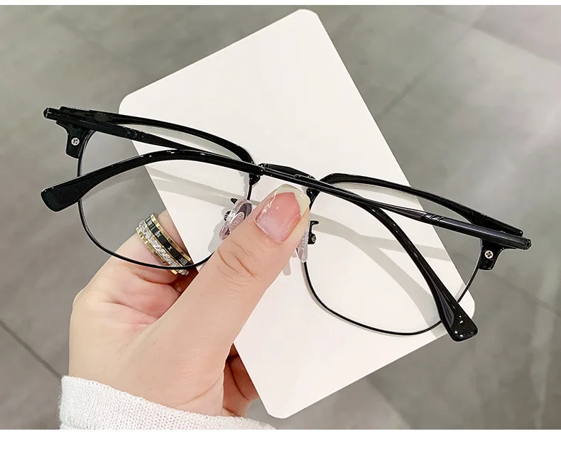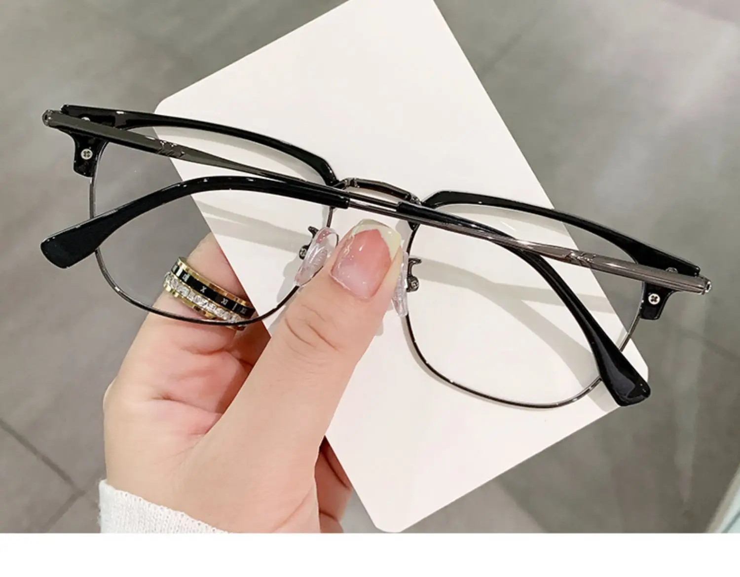 Trend Men’s Half Frame Myopia Glasses Blue Light Blocking Transparent Near Sig