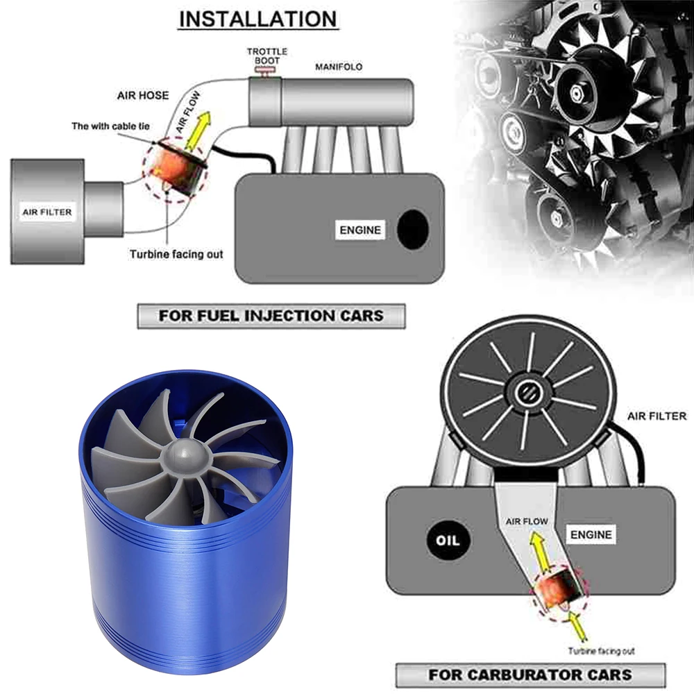Universal Car Air Intake Turbonator Double Fan Turbine Super Charger Gas Fuel Sa