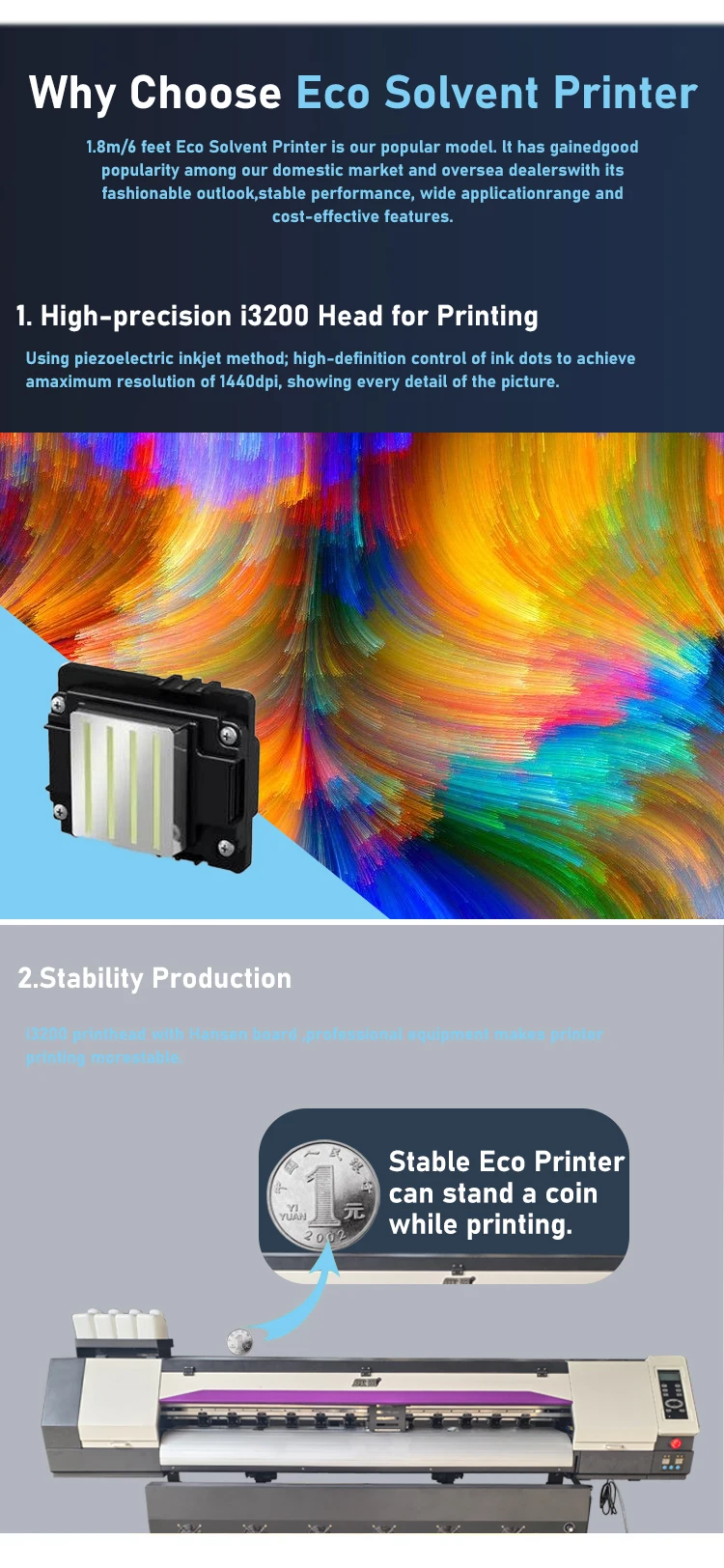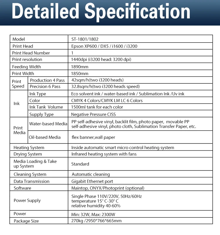 Ink Type: Eco solvent ink/water-based ink/Sublimation Ink /Uv ink