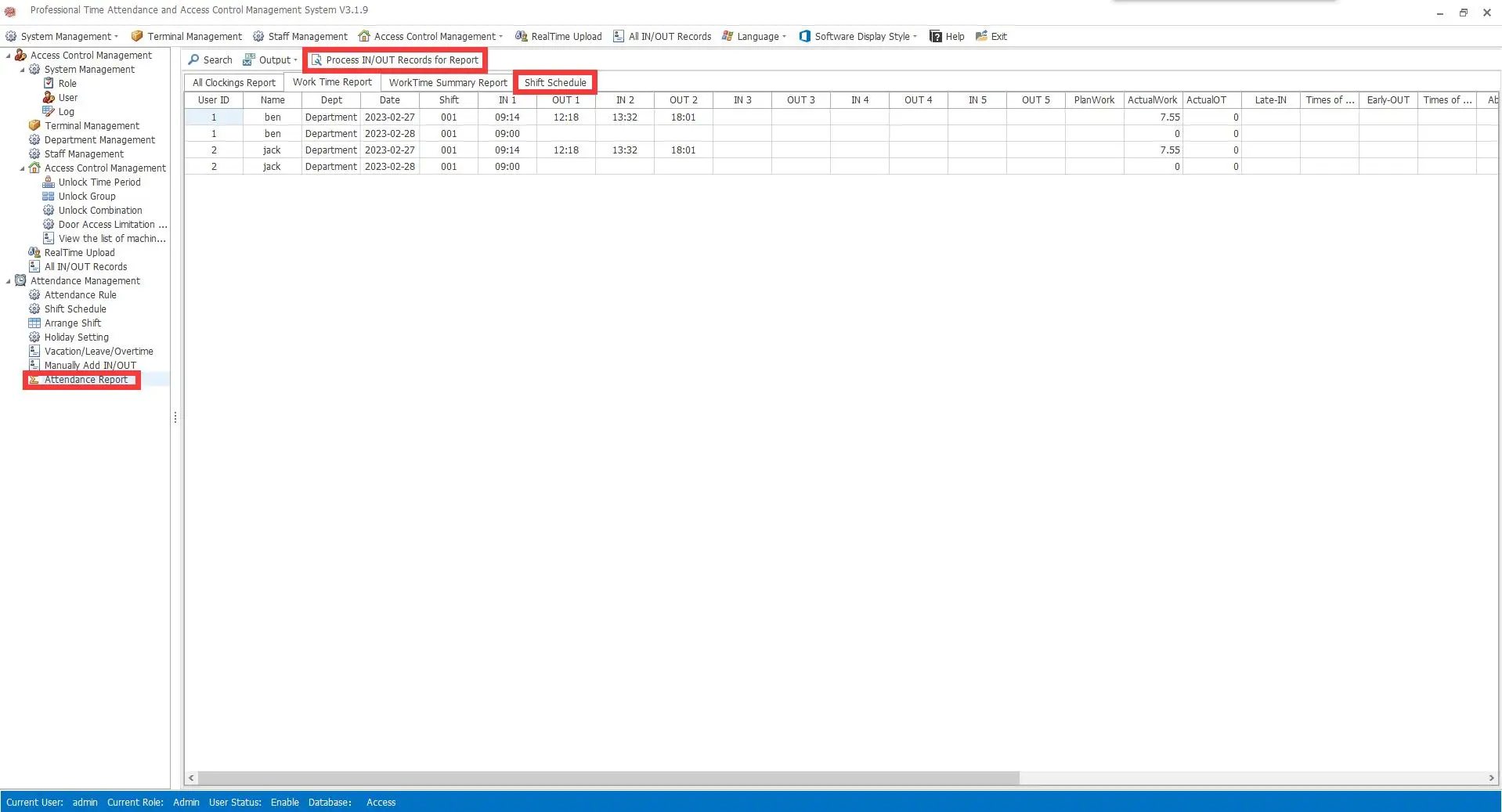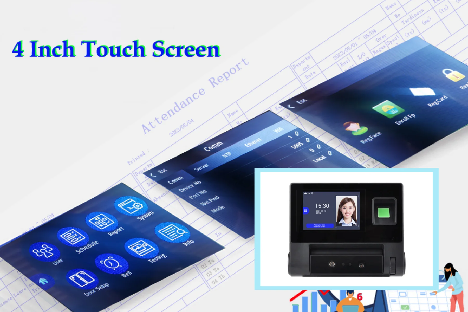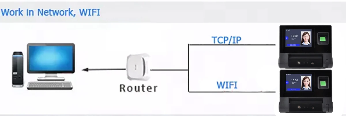 WiFi Face Time Attendance and Access control Empolyee Time Record System Tcp/ip