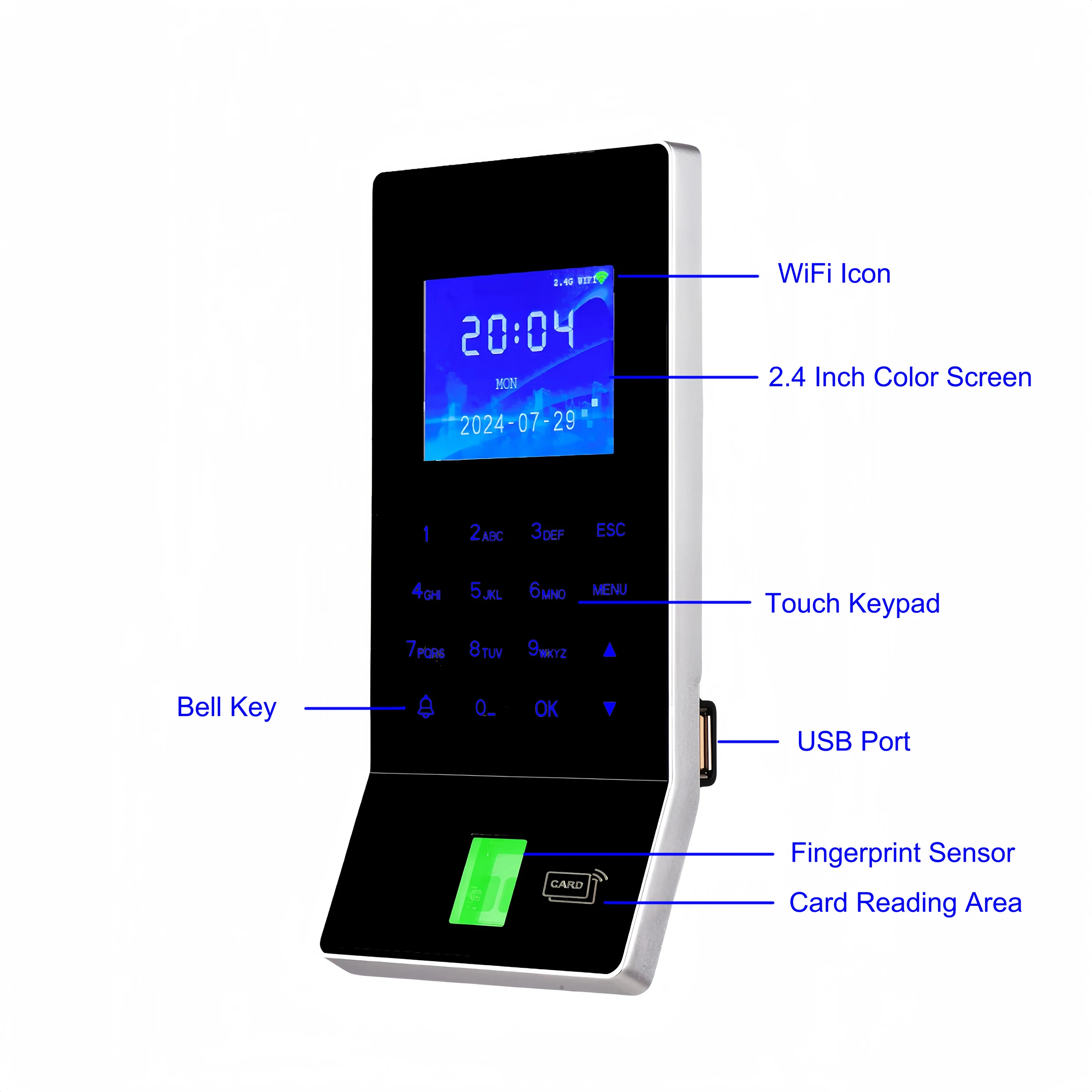 Attendance report: Support U disk(USB2.0) to download the attendance report