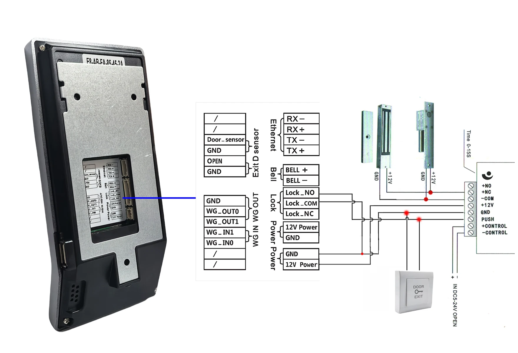 Access Control interface: 3rd Party Electric Lock, Door Sensor, Exit Button,Doorbell
