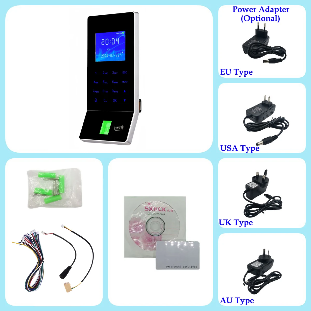 Access Control Interface:3rd Party Electric Lock, Door Sensor, Exit Button,Doorbell