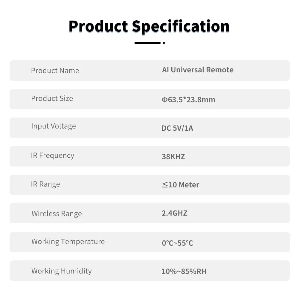 Note: Not compatible with the home appliances which use RF or BLUETOOTH remote control.